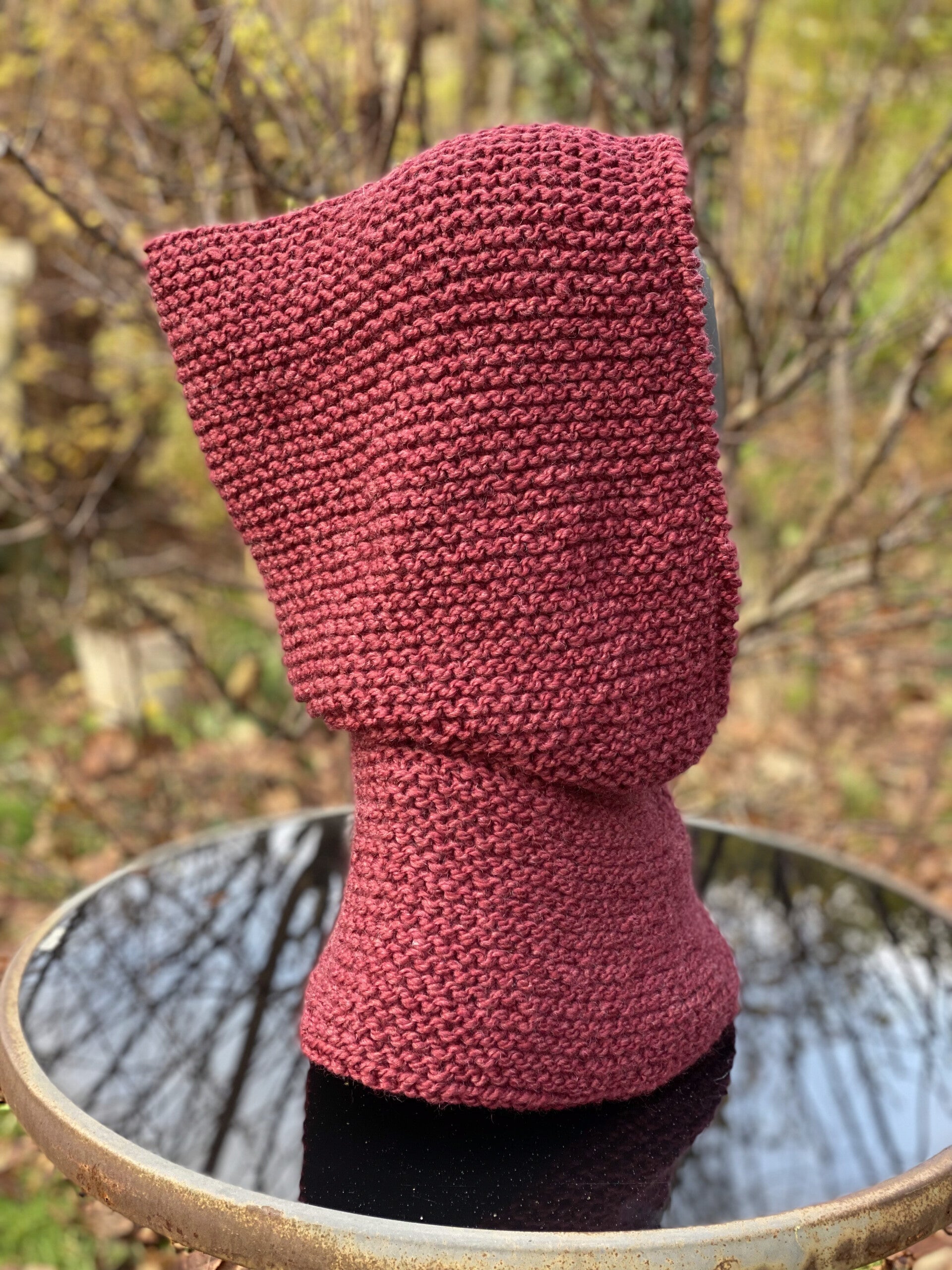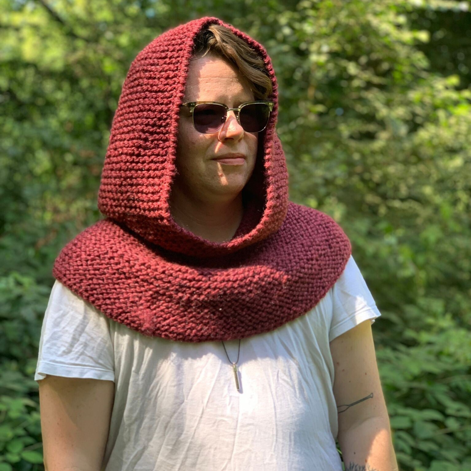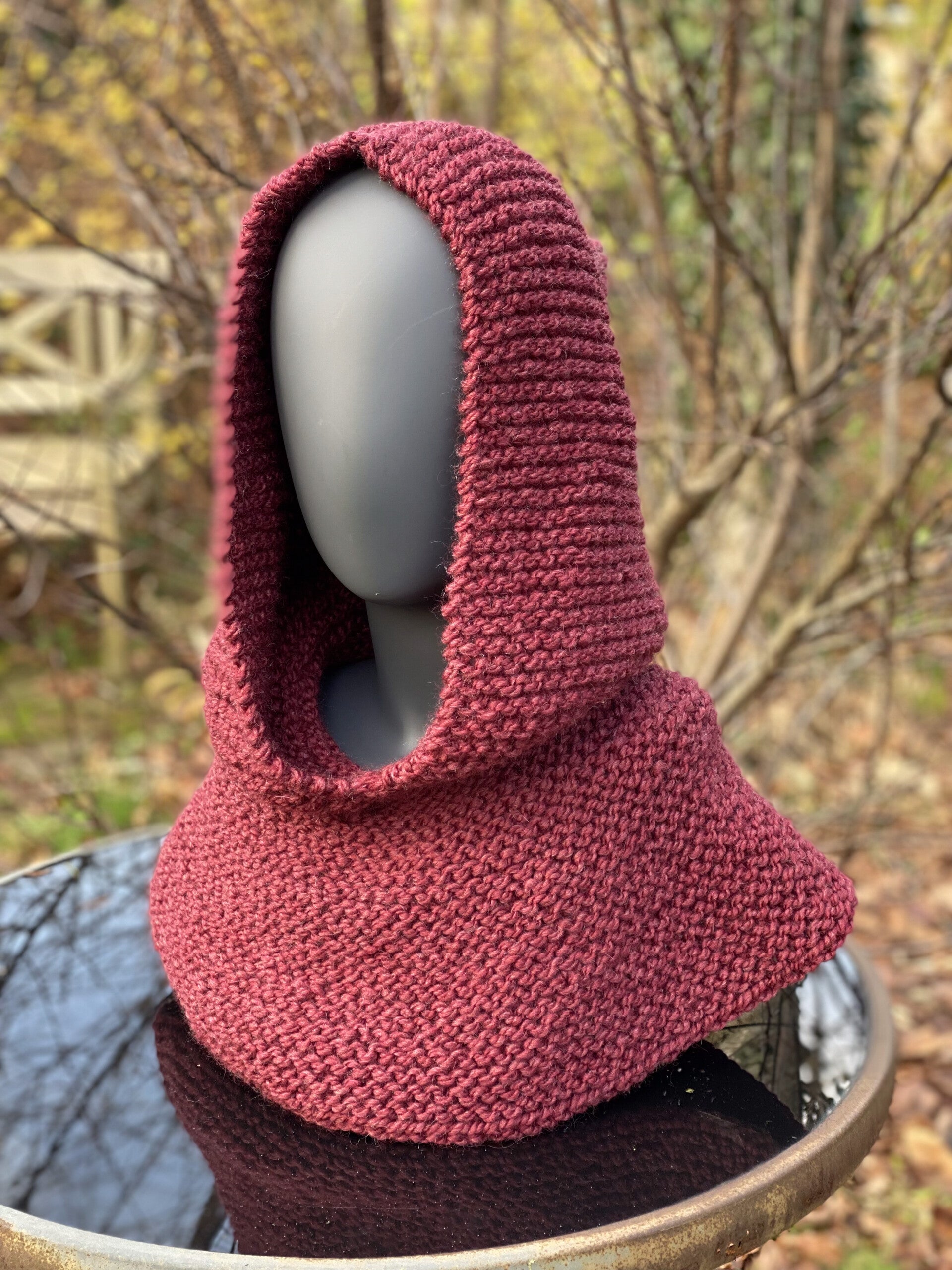 A seriously awesome hood in very soft and bouncy yarn, giving the hood a very cosy, nice and warm feel. To use instead of a beanie, or just for the cosy feeling. The 'shoulders' are round and the front opening of the hood is wide, making it 'fall' nicely.