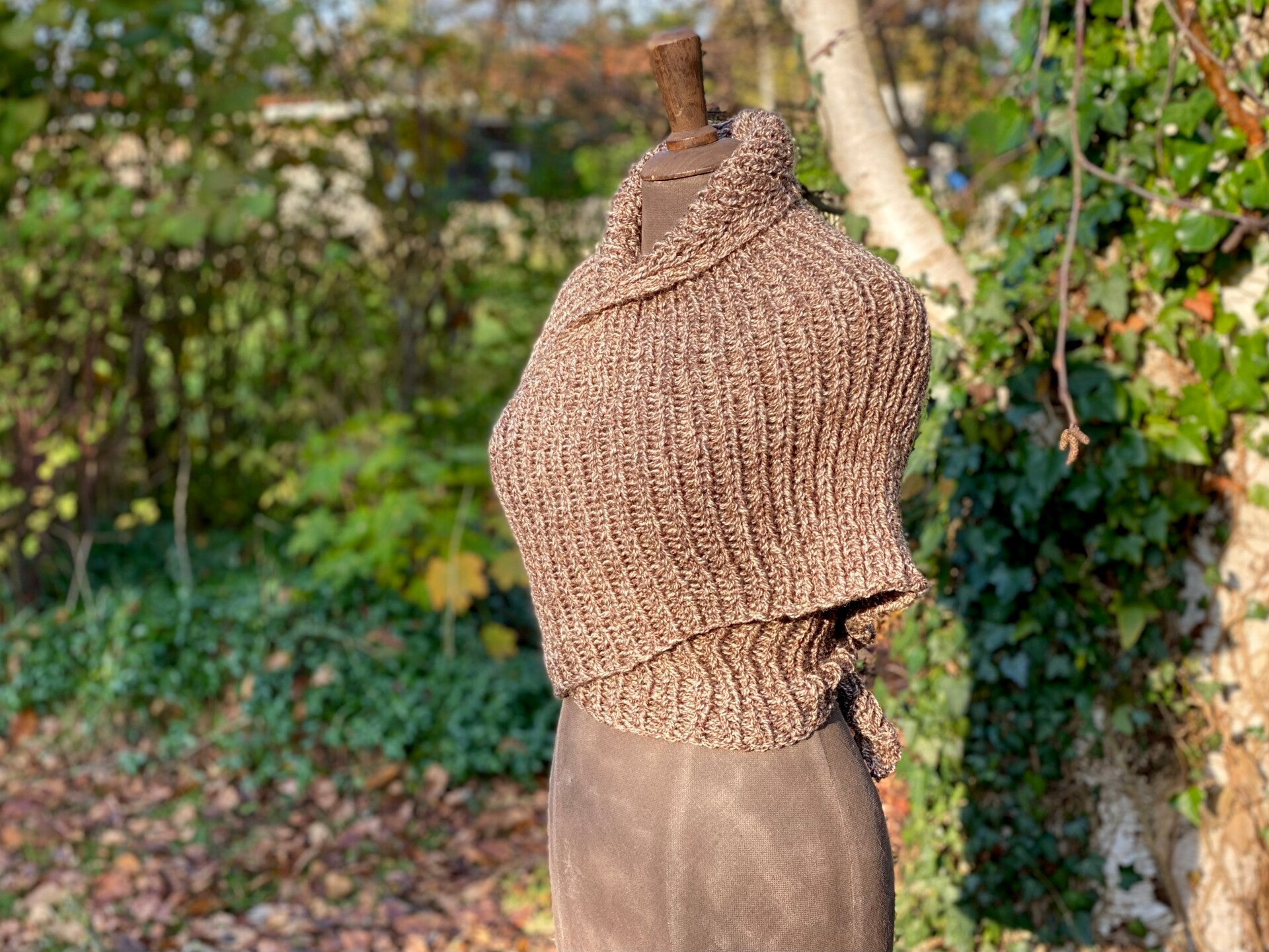 Je kunt hem daarom dragen als een lange sjaal, als een korte omslagdoek - of gewoon om je heen gooien, hij is altijd leuk en stijlvol.