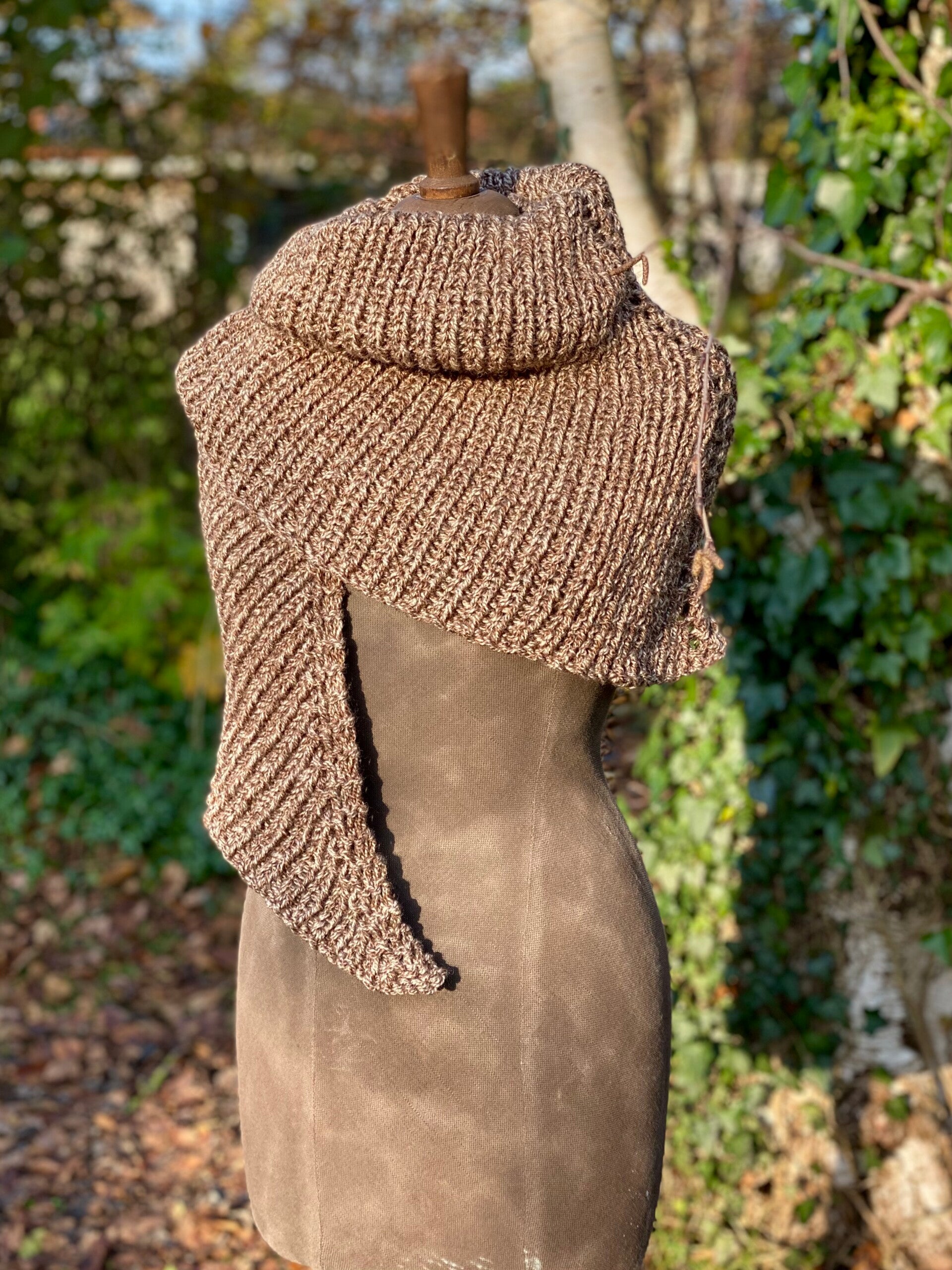🇬🇧 A very ‘flat’ triangle you can wrap around yourself in a large variety of ways - Outlander-style too. Never fails to be stylish! Very soft and flexible.
