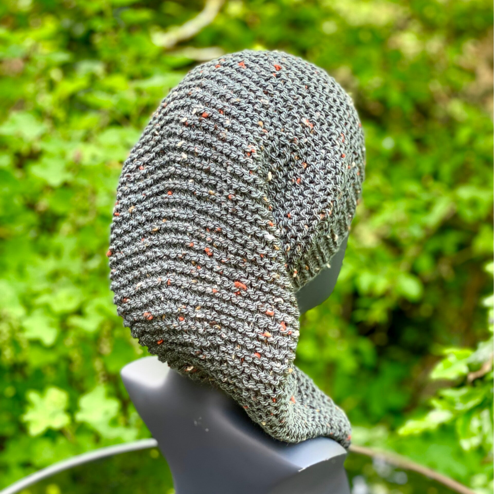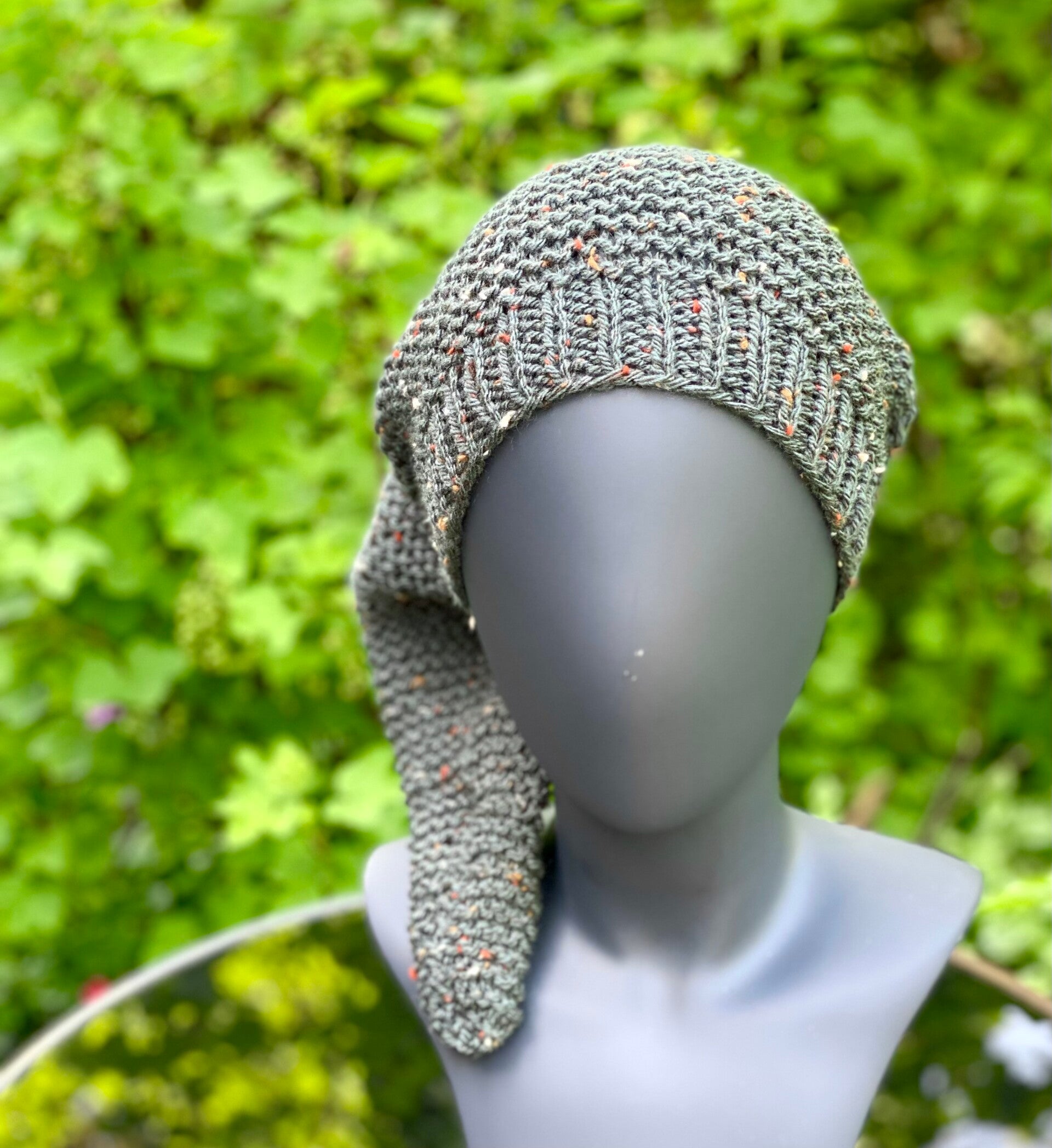 Wonderfully long, pointy beanie, shaped like the hats worn by Link in Zelda, and by the Danish "nisser": The little men and women who used to tease farmers, and who later, after the invention of Santa Claus, decided to help him. A whimsical beanie all in all.