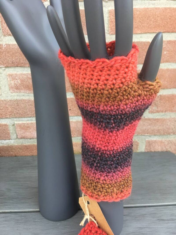 Vingerloze handschoenen / Polswarmers - warme rode en bruine kleuren