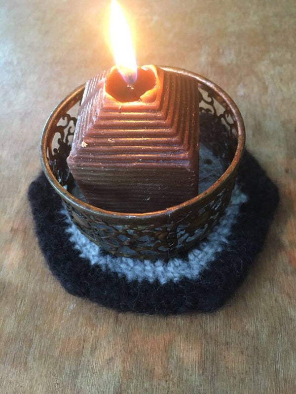 Ze zijn gevold: eerst gehaakt en erna gevilt, van 100% wol. Wol is super isolerend wanneer het op deze manier wordt bewerkt.