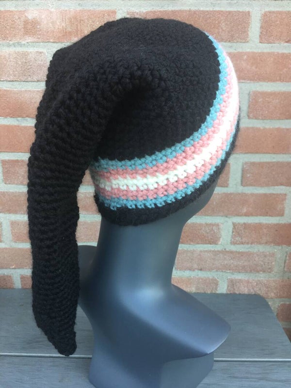 eldige, lange puntmuts in het model van de Deense gnomen (nisser zijn de kleine mannetjes en vrouwtjes die de boeren vroeger graag mochten plagen en later, toen de kerstman werd uitgevonden, hem gingen helpen. Zij dragen rode puntmutsen.) - of naar een elf-idee.
