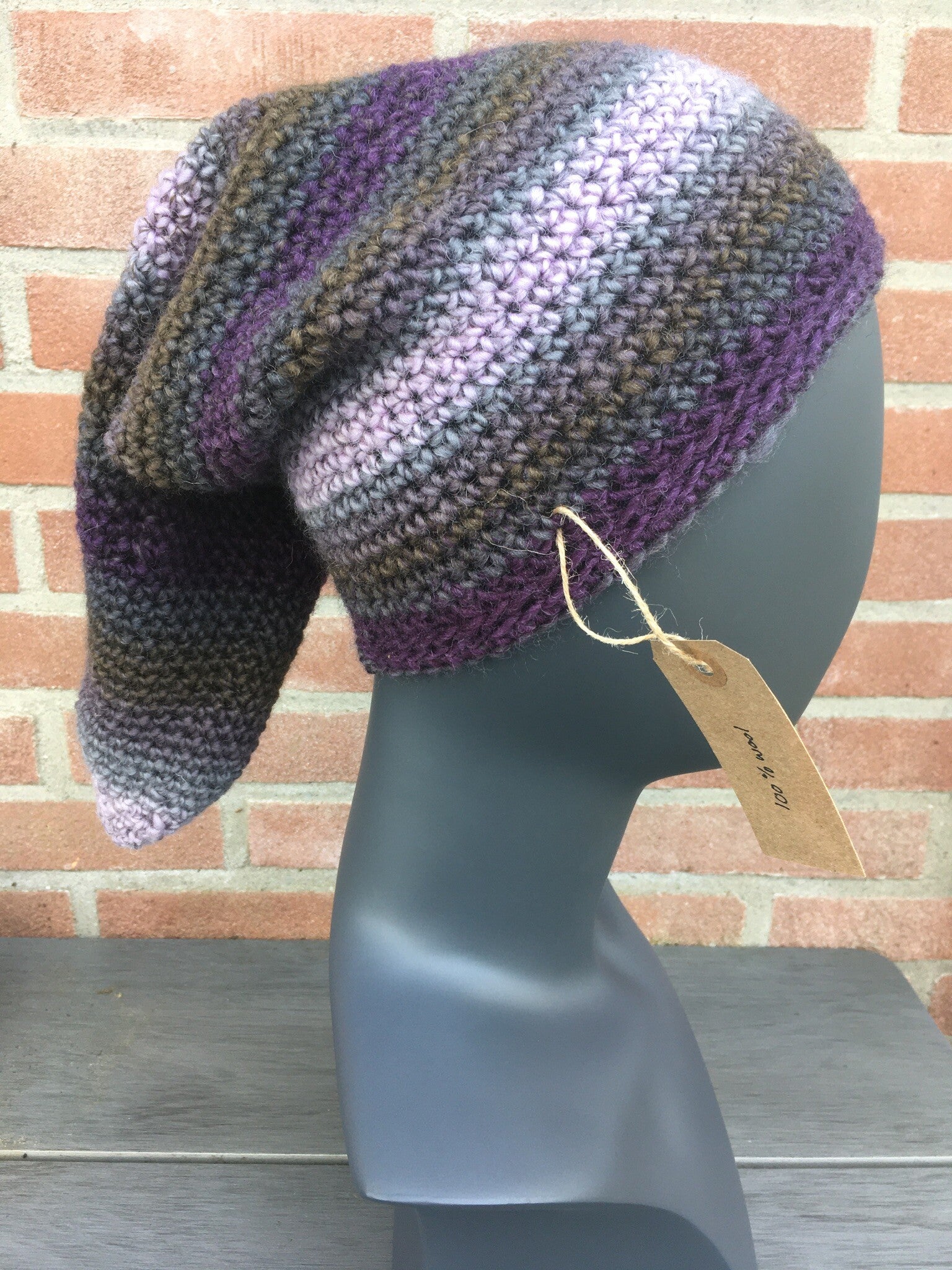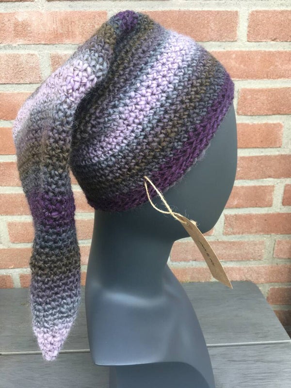 Wonderfully long, pointy beanie, shaped like the hats worn by the Danish "nisser": The little men and women who used to tease farmers, and who later, after the invention of Santa Claus, decided to help him. A whimsical beanie all in all.