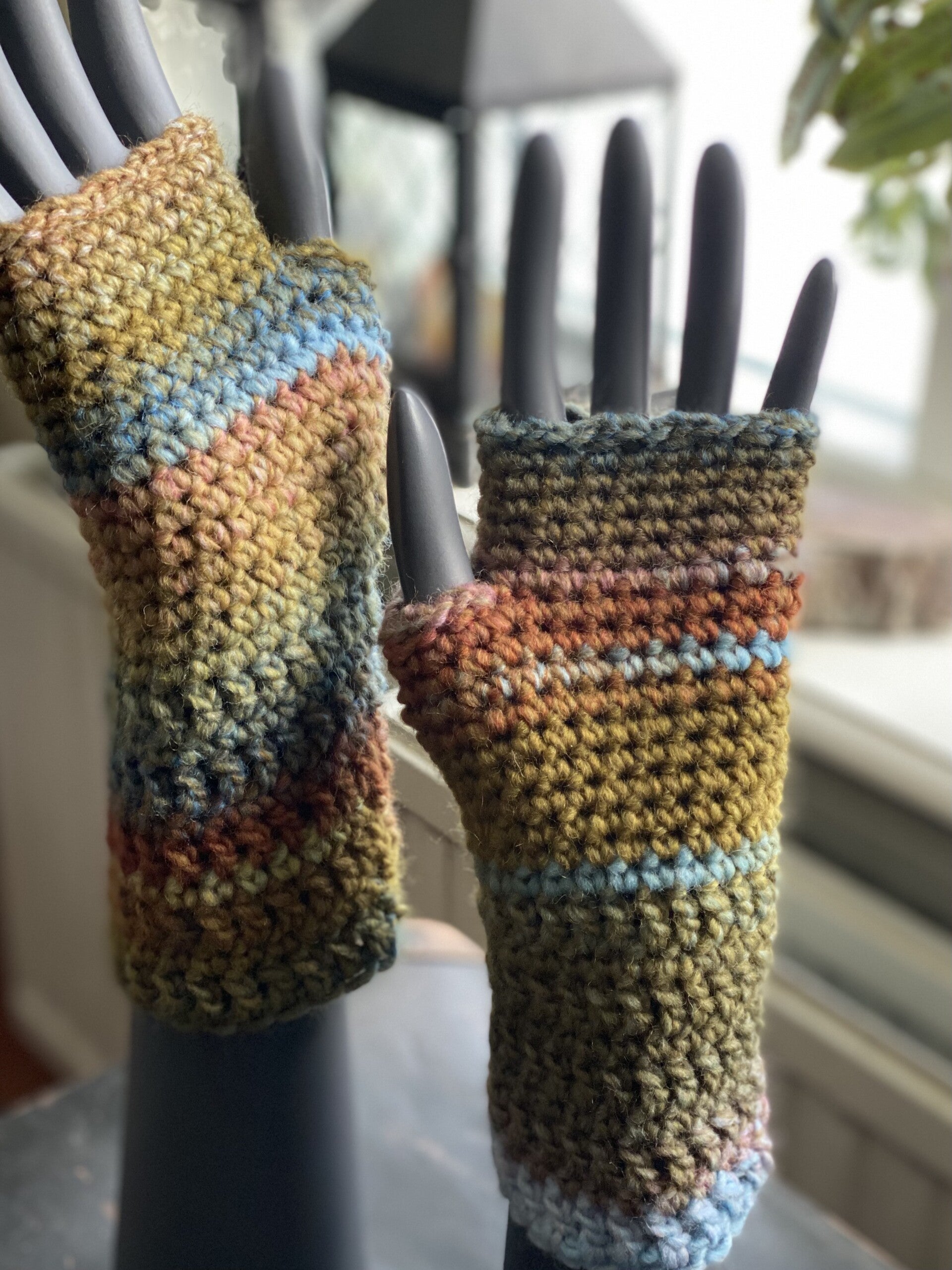 Please notice: Left and right hands are different, because of the colour variations of the yarn!