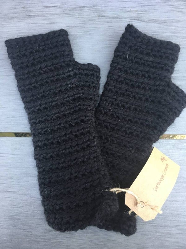 These fingerless mittens / wrist warmers with a little ‘thumb,’ are some of our most sold products: they provide convenient ways to keep your hands warm, because you do not need to take them off if you want to use your smartphone :)