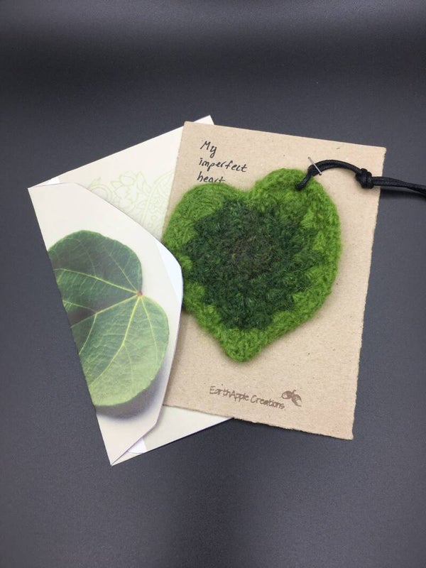 - Materials: Tag - handmade from 100% wool, felted. Card - made of recycled cardboard. Envelope - made of up-cycled magazines.