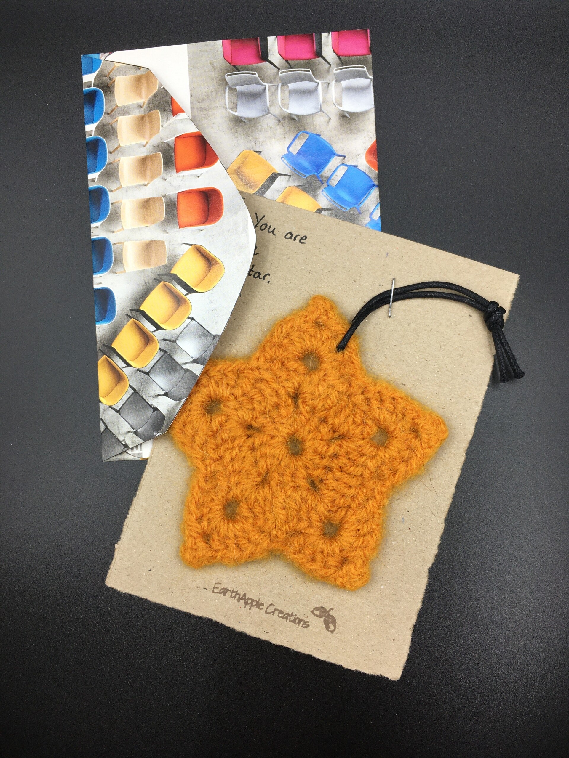 - Materials: Tag - handmade from 100% wool, felted. Card - made of recycled cardboard. Envelope - made of up-cycled magazines.
