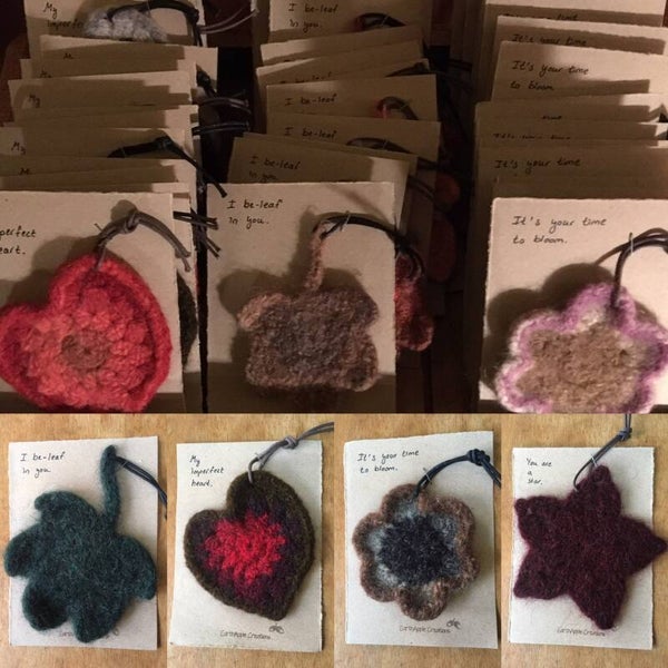 Een aardig woordje, een beetje steun, een schouderklopje in een envelop - altijd een goed idee! De hanger kan van de kaart af gehaald worden en kan worden gebruikt voor geur-olie of decoratie. Alle hangers zijn handgemaakt en uniek.