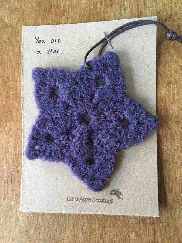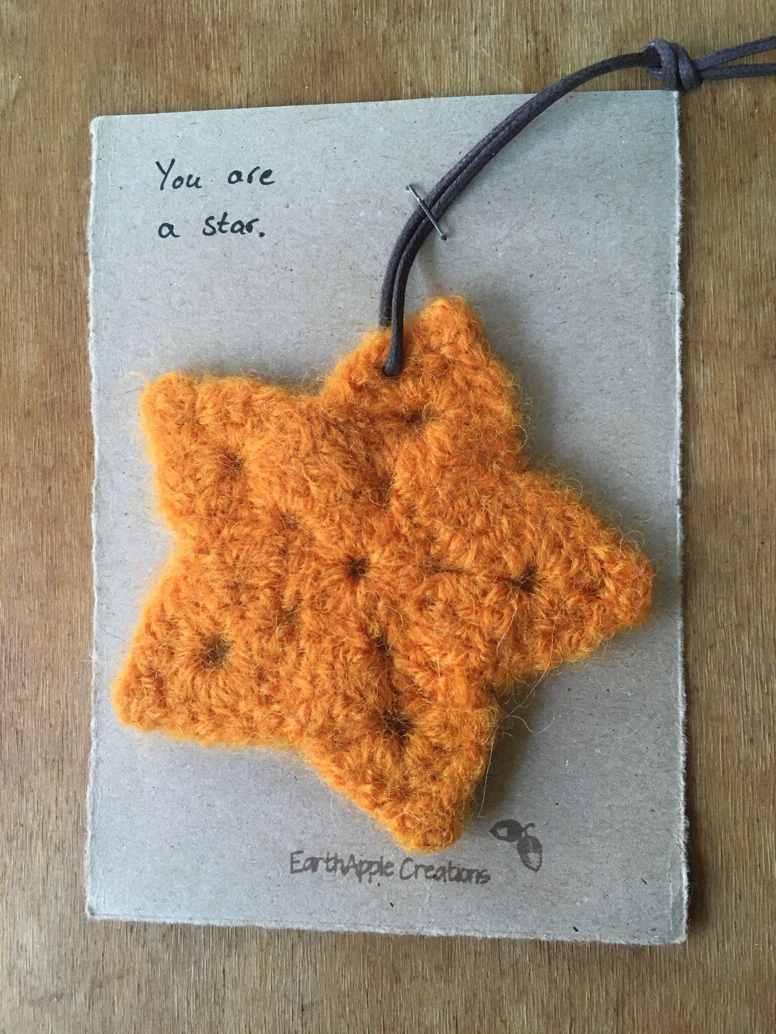 Een aardig woordje, een beetje steun in de rug in een envelop - altijd een goed idee! De hanger kan van de kaart af gehaald worden en kan worden gebruikt voor geur-olie of decoratie. Alle hangers zijn handgemaakt en uniek.