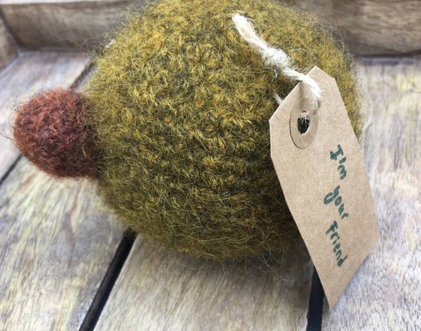 They have been crocheted from 100% wool and are filled with washable polyester stuffing, after which they have been felted in the washer. Thus, the Friends can be laundered, and are close and safe, without any loose parts.