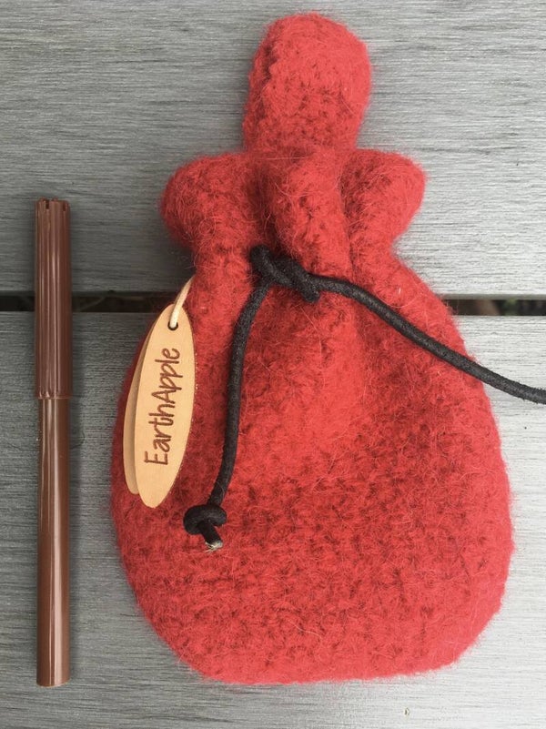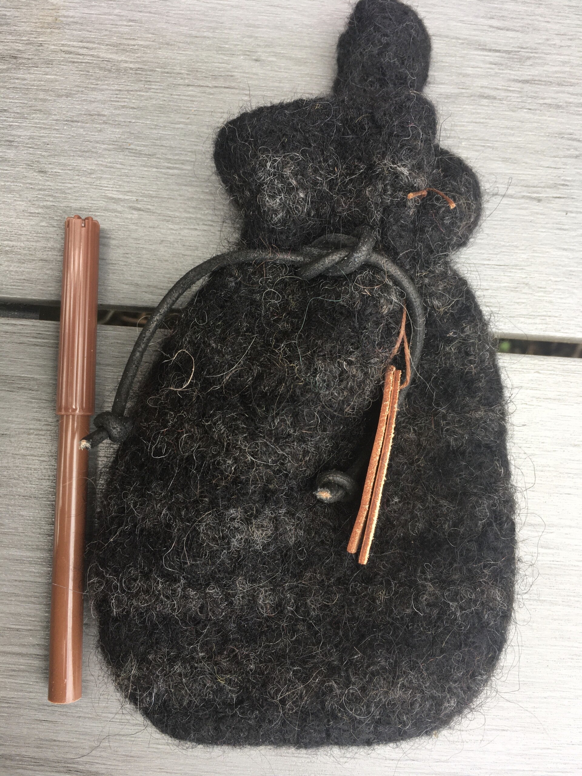 The pouches are made from 100% wool, and have been felted afterwards. They can be closed with a leather string.