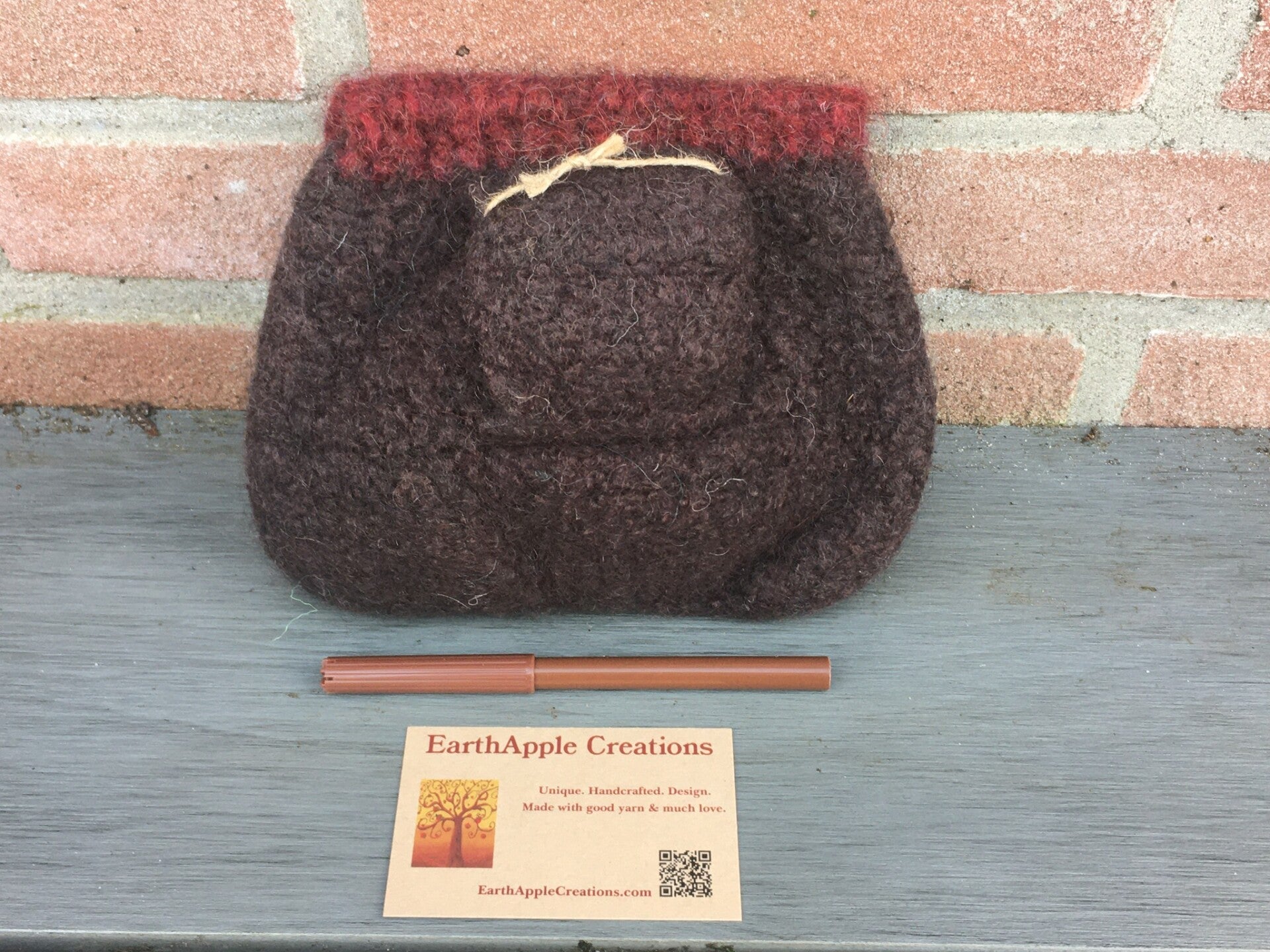 - Crocheted from 100% wool, then felted.