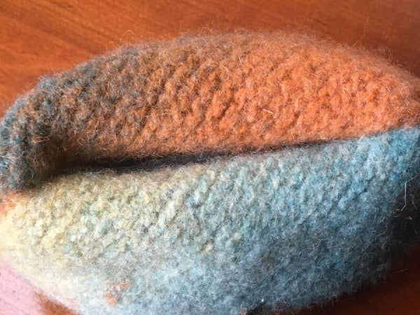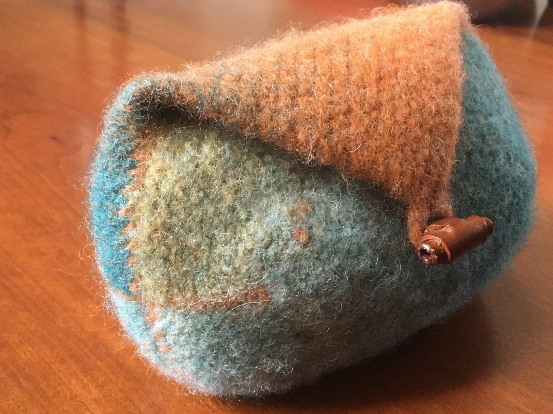 - Materials: Crocheted from 100% wool, then felted. Button is made of metal.