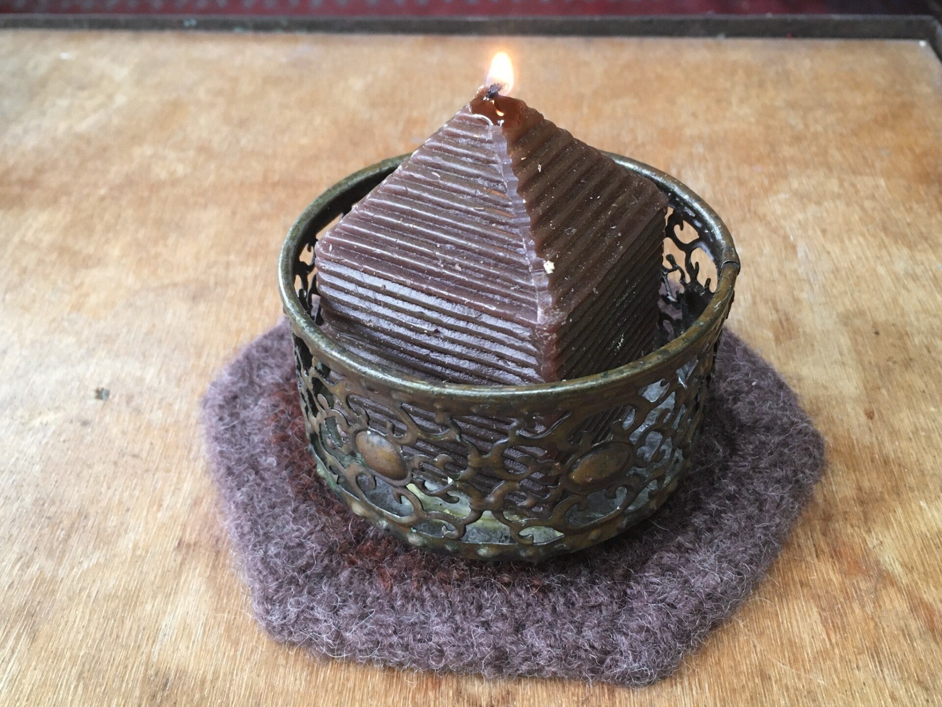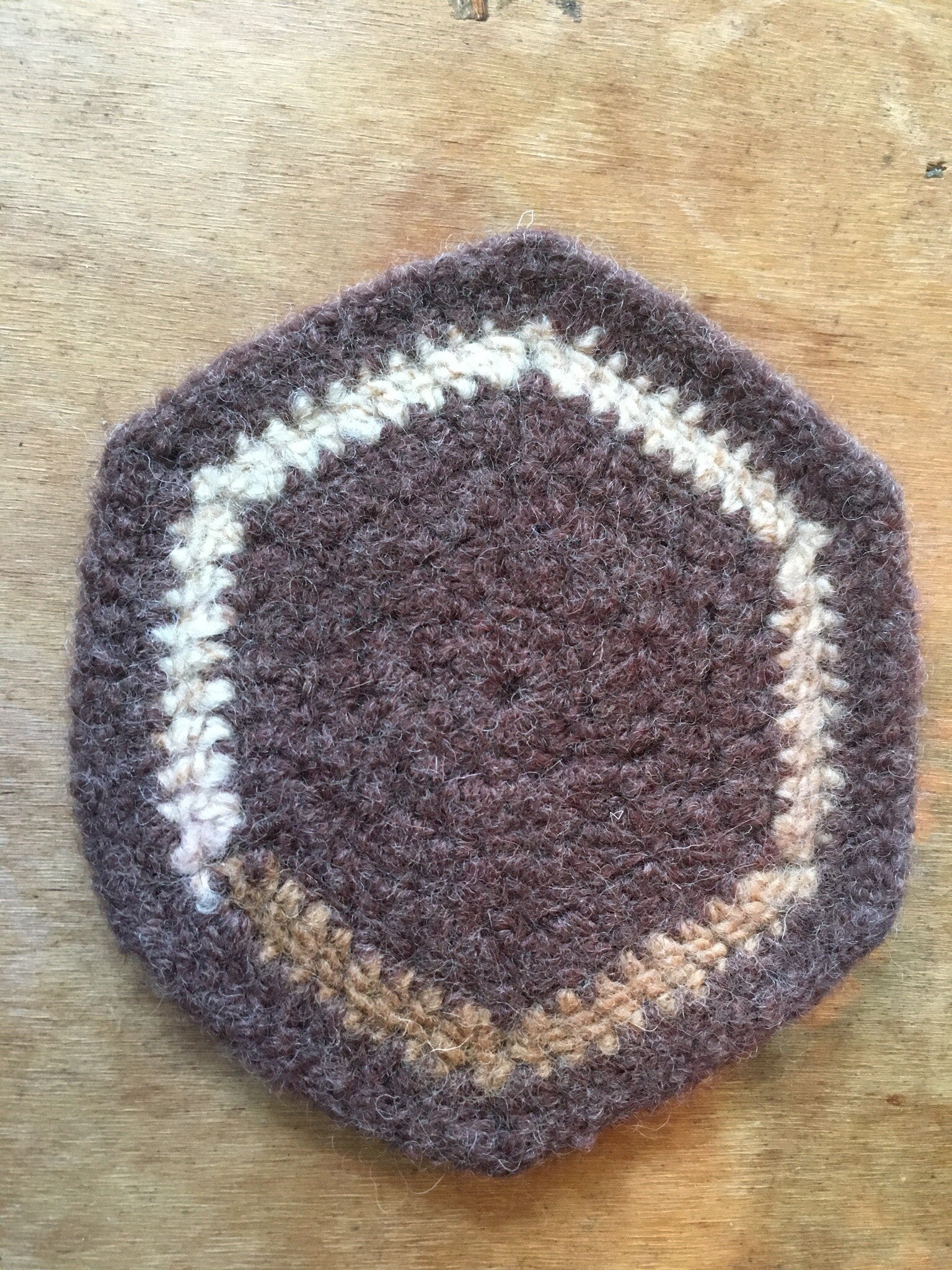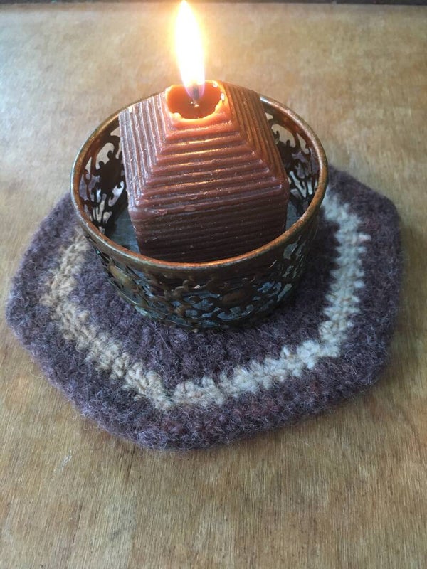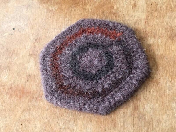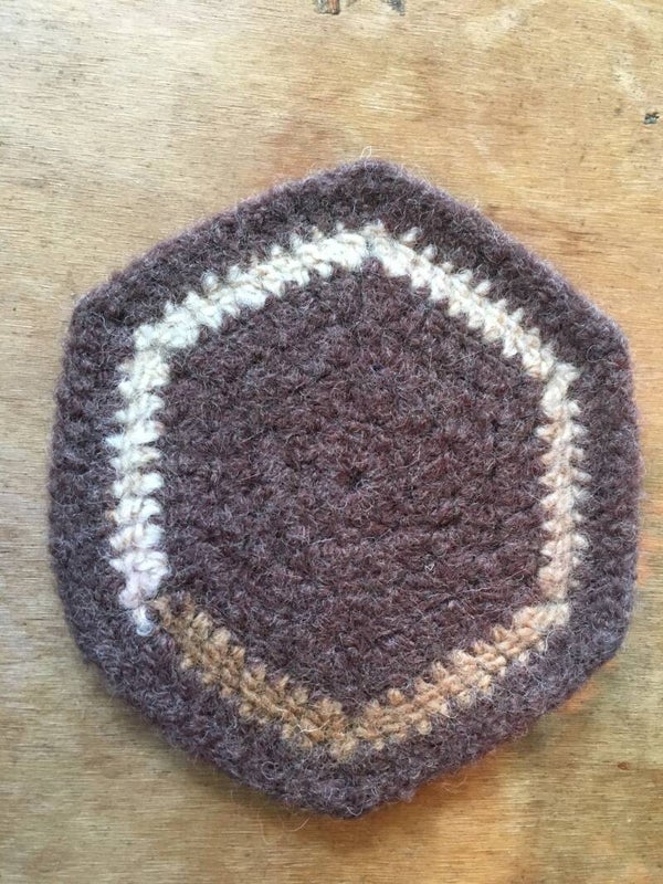 All coasters are made from 100% wool; they were crocheted first, then felted. Wool is super insulating when treated in this manner.