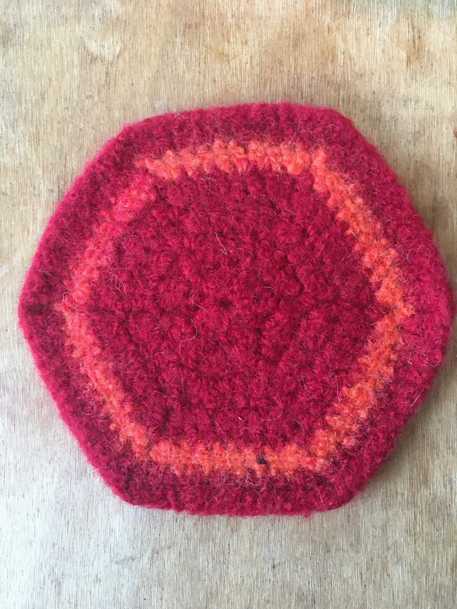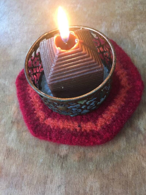 All coasters are made from 100% wool; they were crocheted first, then felted. Wool is super insulating when treated in this manner.