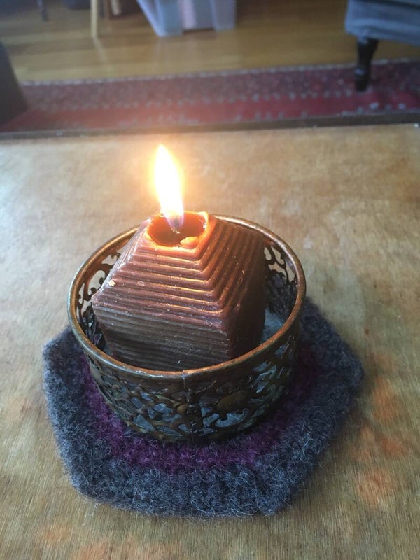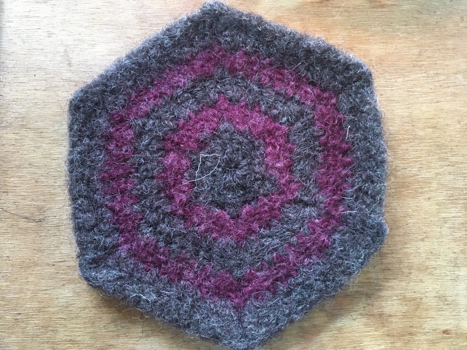 All coasters are made from 100% wool; they were crocheted first, then felted. Wool is super insulating when treated in this manner.
