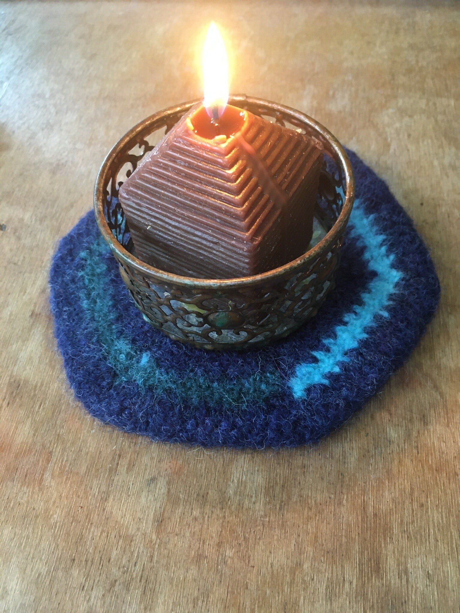 All coasters are made from 100% wool; they were crocheted first, then felted. Wool is super insulating when treated in this manner.