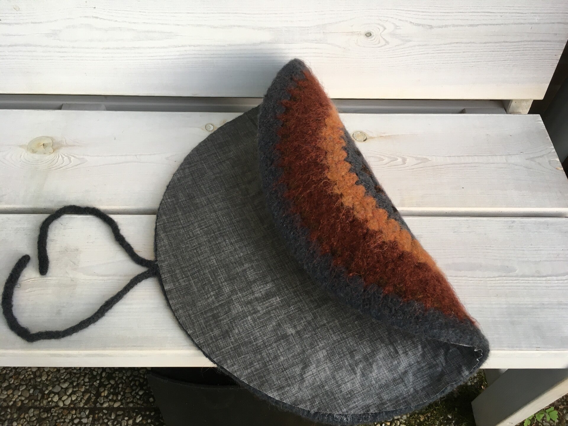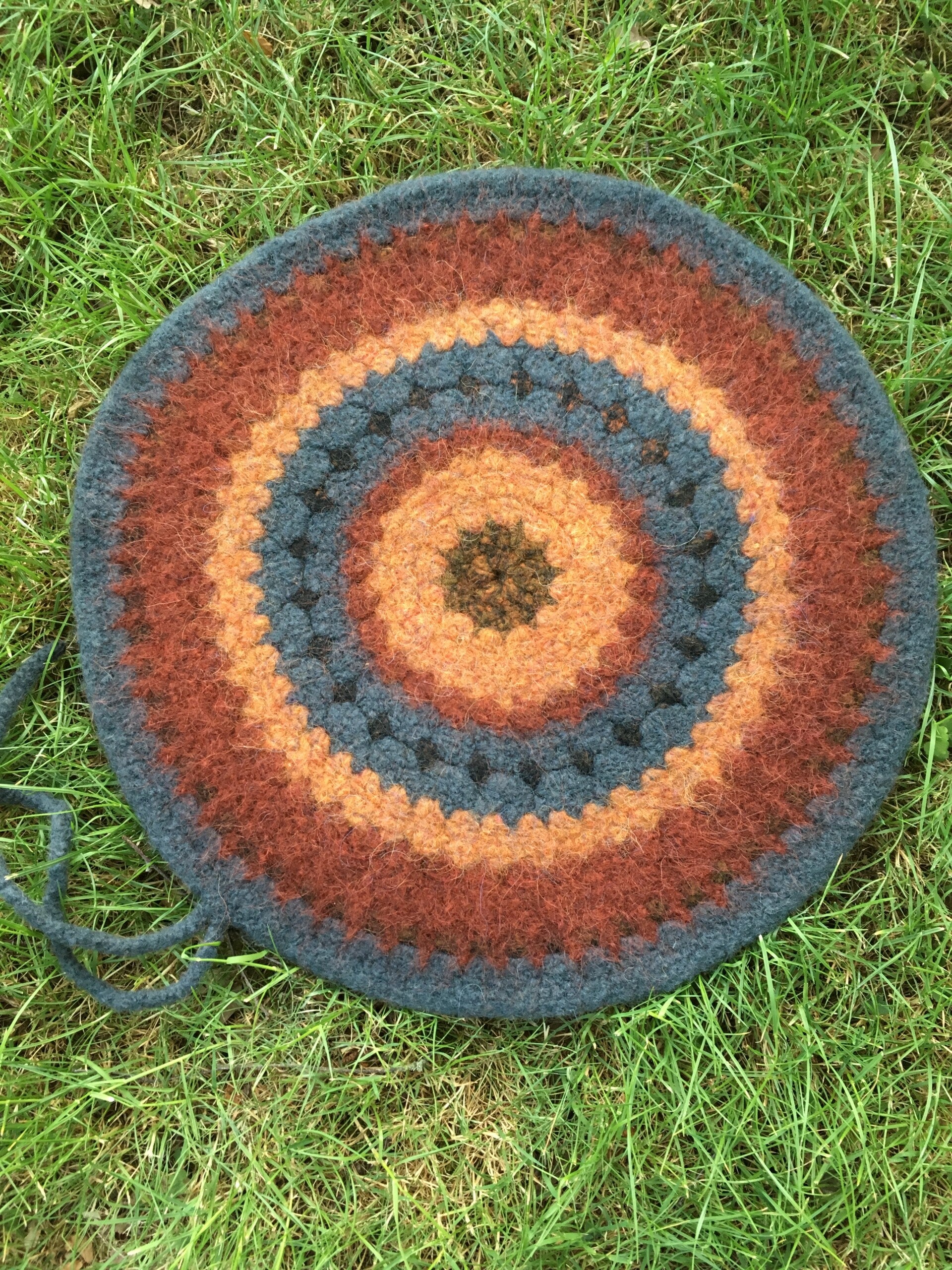 - Made from 100% wool, crocheted, and then felted with waterproof polyester on the back.