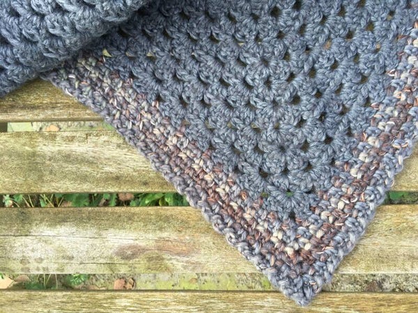Effen grijze Big Hug omslagdoek met een rand in aarde-kleuren