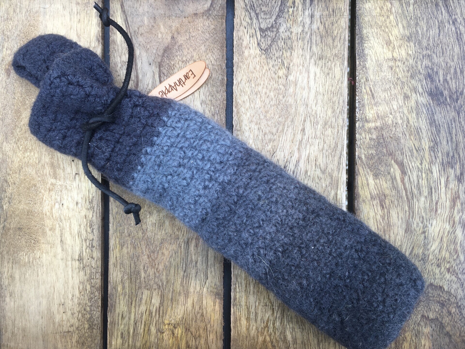Zelf je bestek bij je hebben kan super handig zijn voor als je op pad bent: festivals of andere outdoor activiteiten. Dit bestek kan eindeloos worden gewassen en weer meegenomen en belast al met al het milieu zo weinig mogelijk. Onze Bestek-Bags zijn van 100% wol en gevilt. Ze hebben een lus achter zodat ze aan de riem kunnen, maar zo in de tas kan natuurlijk ook. De bags zijn er in allerlei kleuren, om vrolijk van te worden. Ze sluiten met een leren touwtje.