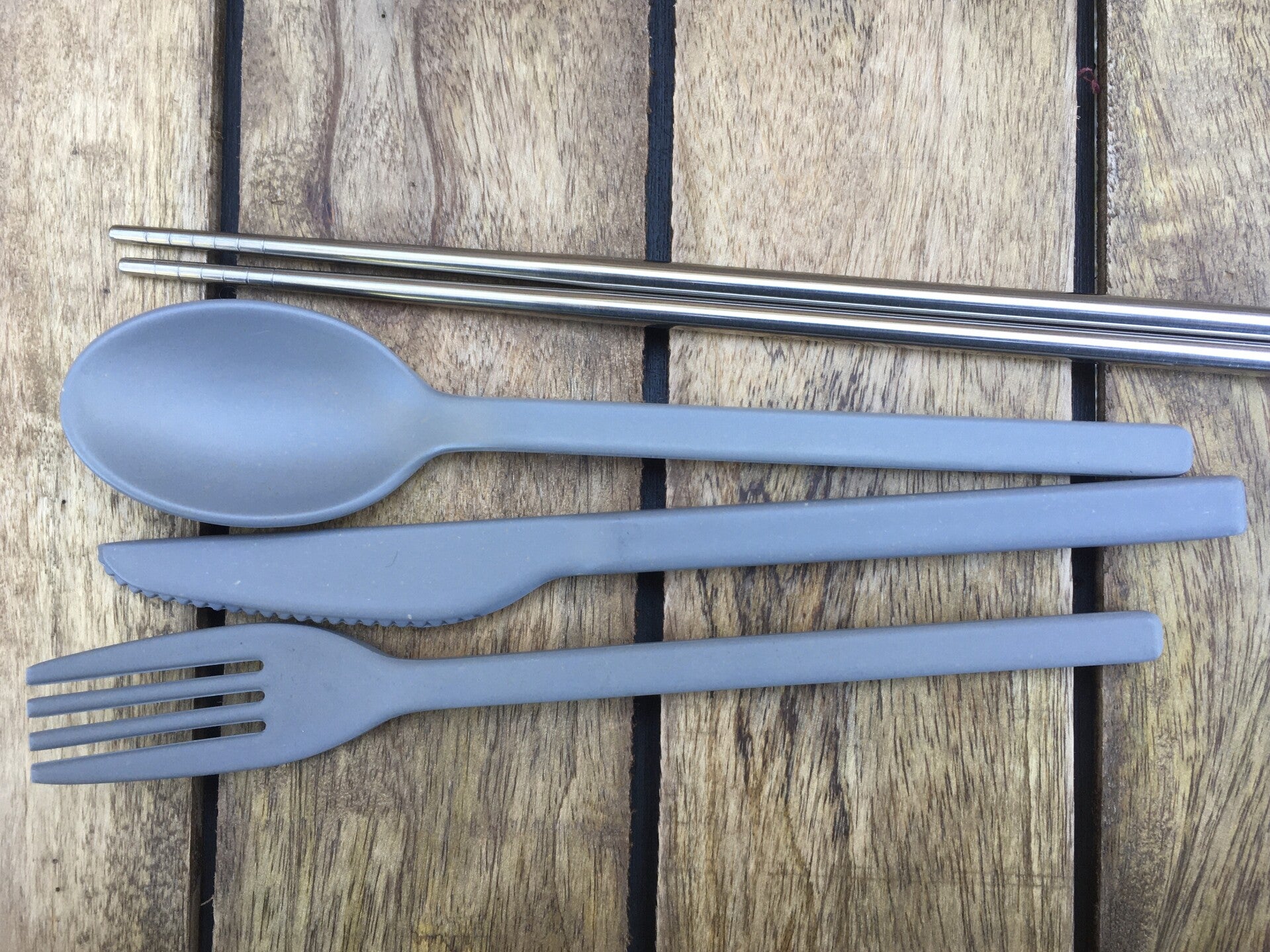Inclusief bestek naar keuze - mes, vork, lepel & chopsticks van bamboe OF mes, vork, lepel van bamboevezels & chopsticks van roestvrij staal.