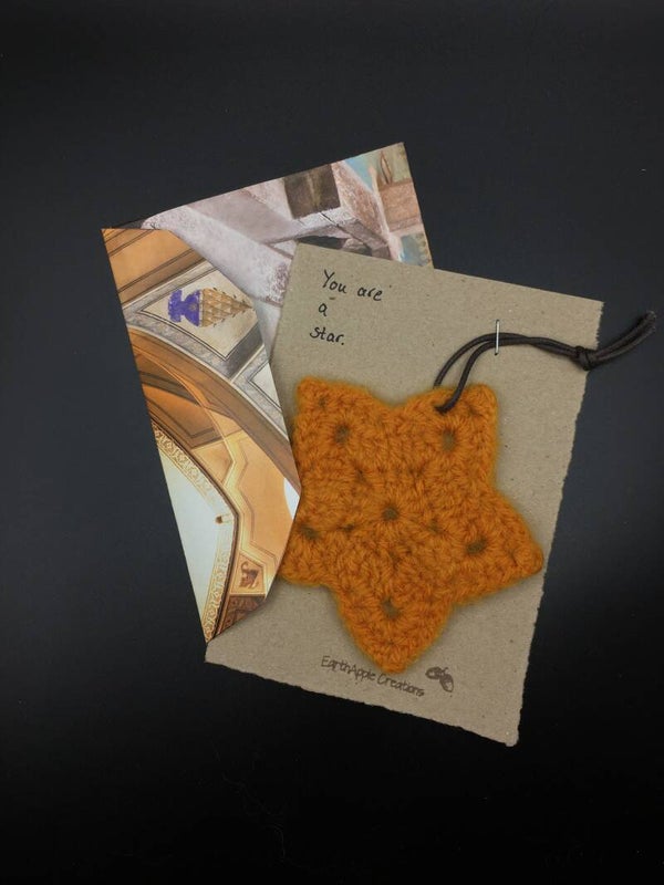 Een aardig woordje, een beetje steun in de rug in een envelop - altijd een goed idee! De hanger kan van de kaart af gehaald worden en kan worden gebruikt voor geur-olie of decoratie. Alle hangers zijn handgemaakt en uniek.