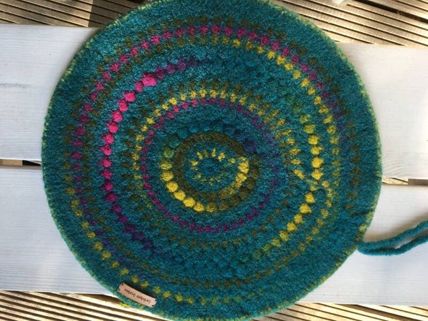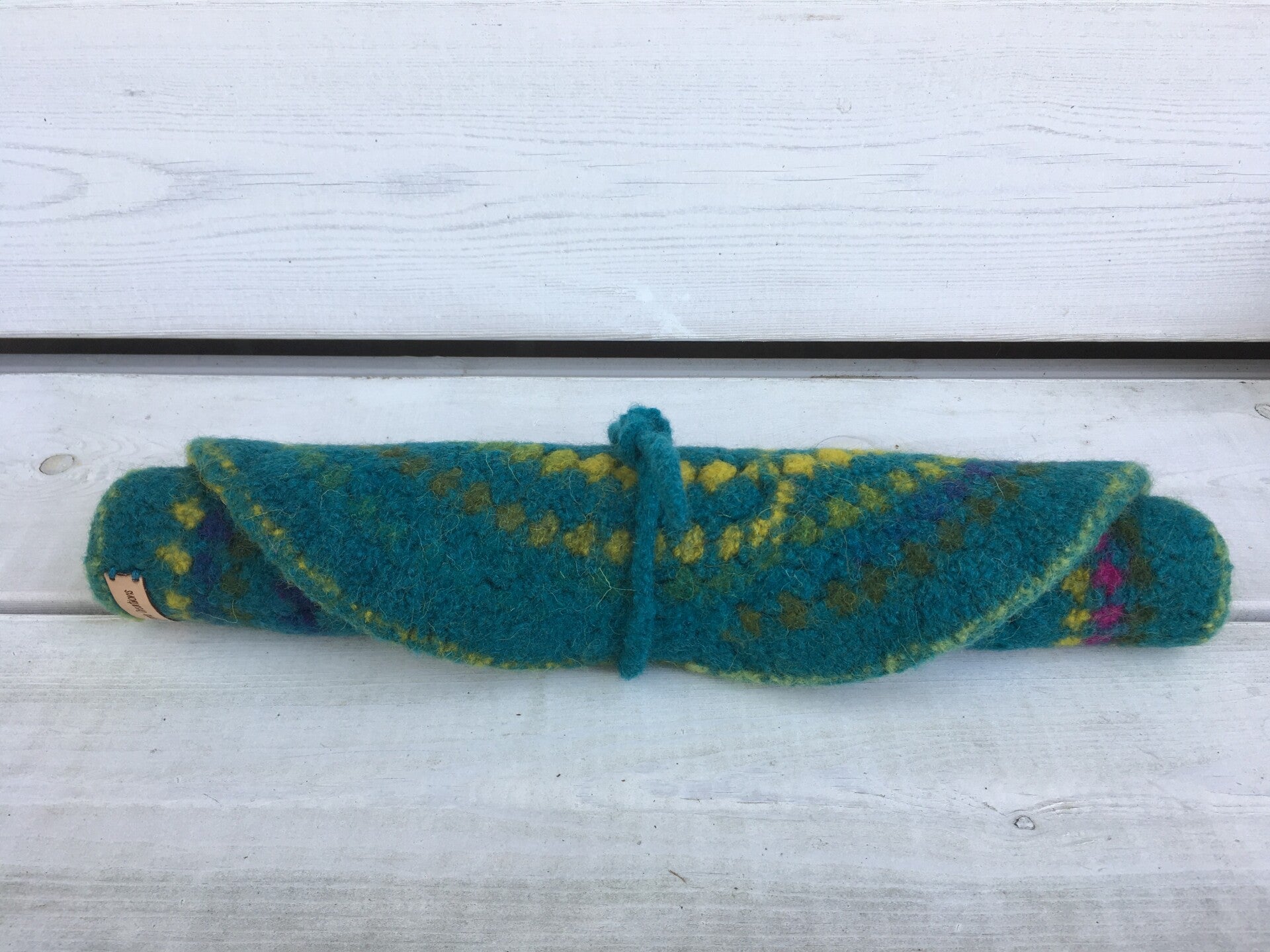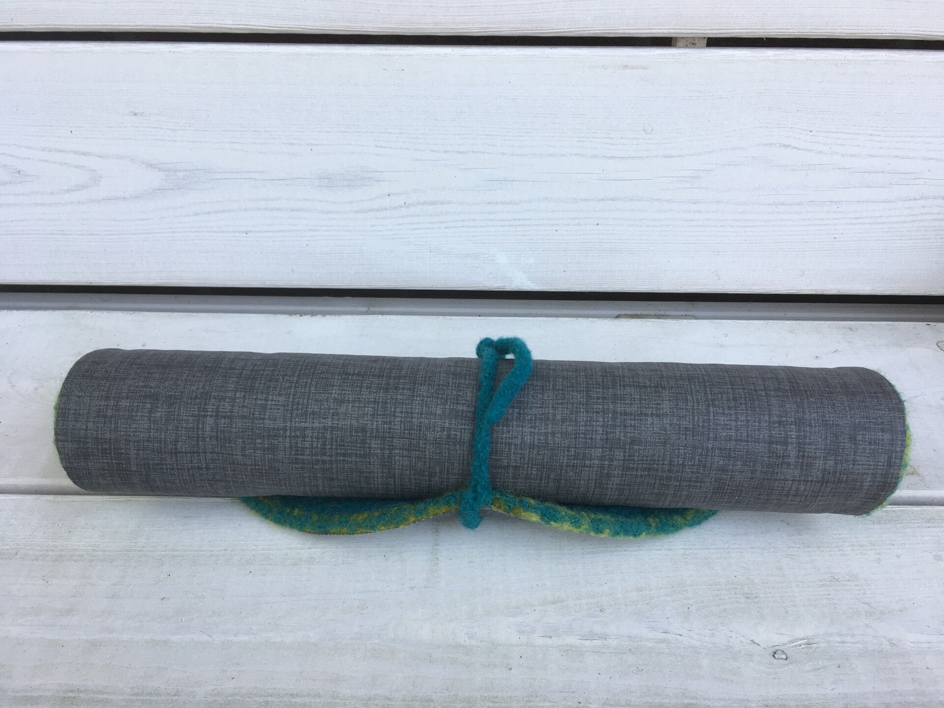 Een mooie, maar ook erg praktisch mat, geschikt voor zo'n beetje alle situaties buiten: de wollen bovenkant is gehaakt en dan gevilt, dat maakt hem heerlijk warm. En met de watervaste achterkant word je niet koud of nat, maar zit je prettig waar en op welke ondergrond ook. Je rolt hem zo op en bind hem met de touwtjes, dan past hij in een zijvak van een rugzak. Super voor festivals, hiking, wandelen of lekker op de tuinbank - je buiten-seizoen wordt er gewoon langer mee.