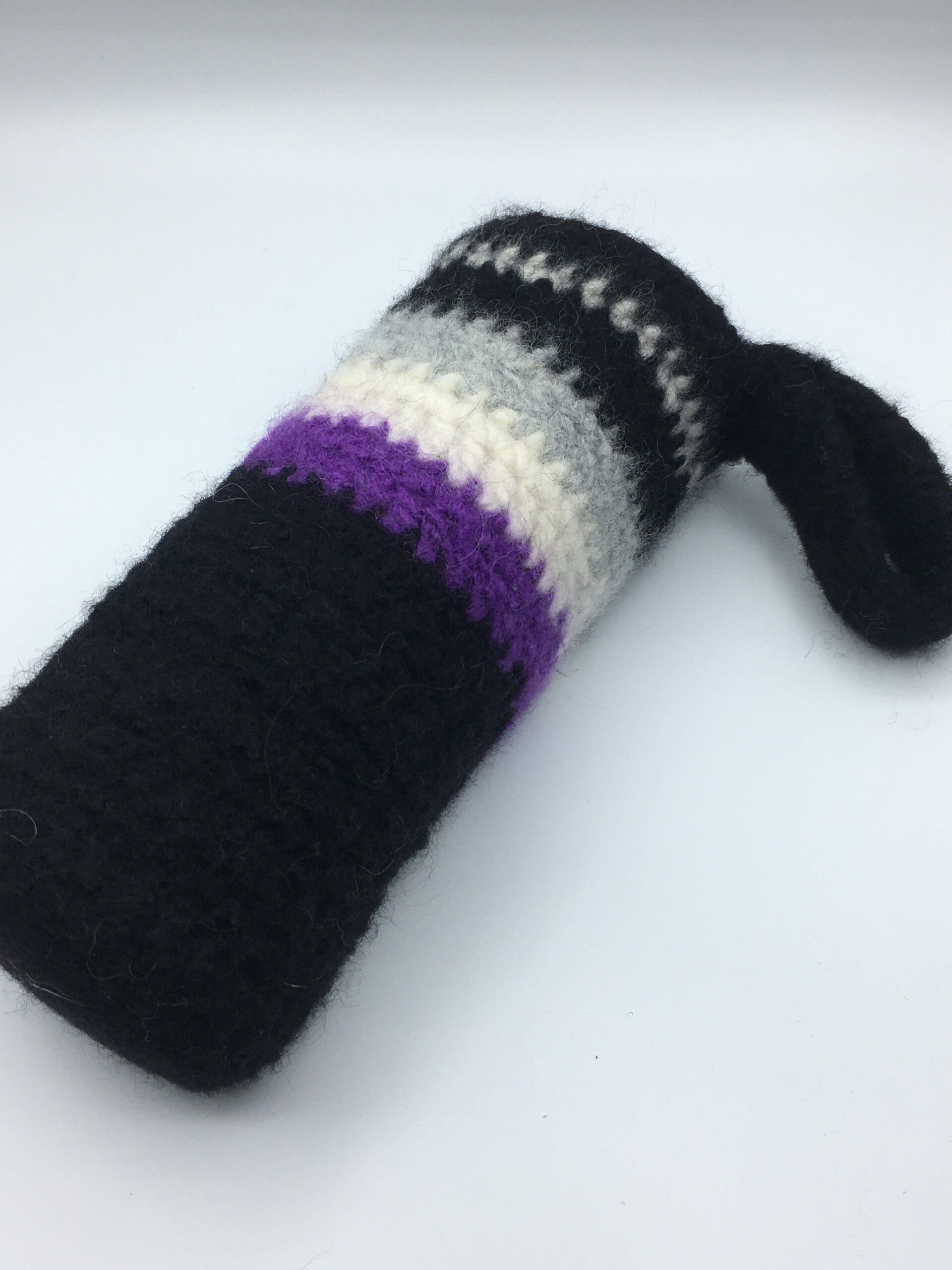 - Made of 100% wool, crocheted and then felted.