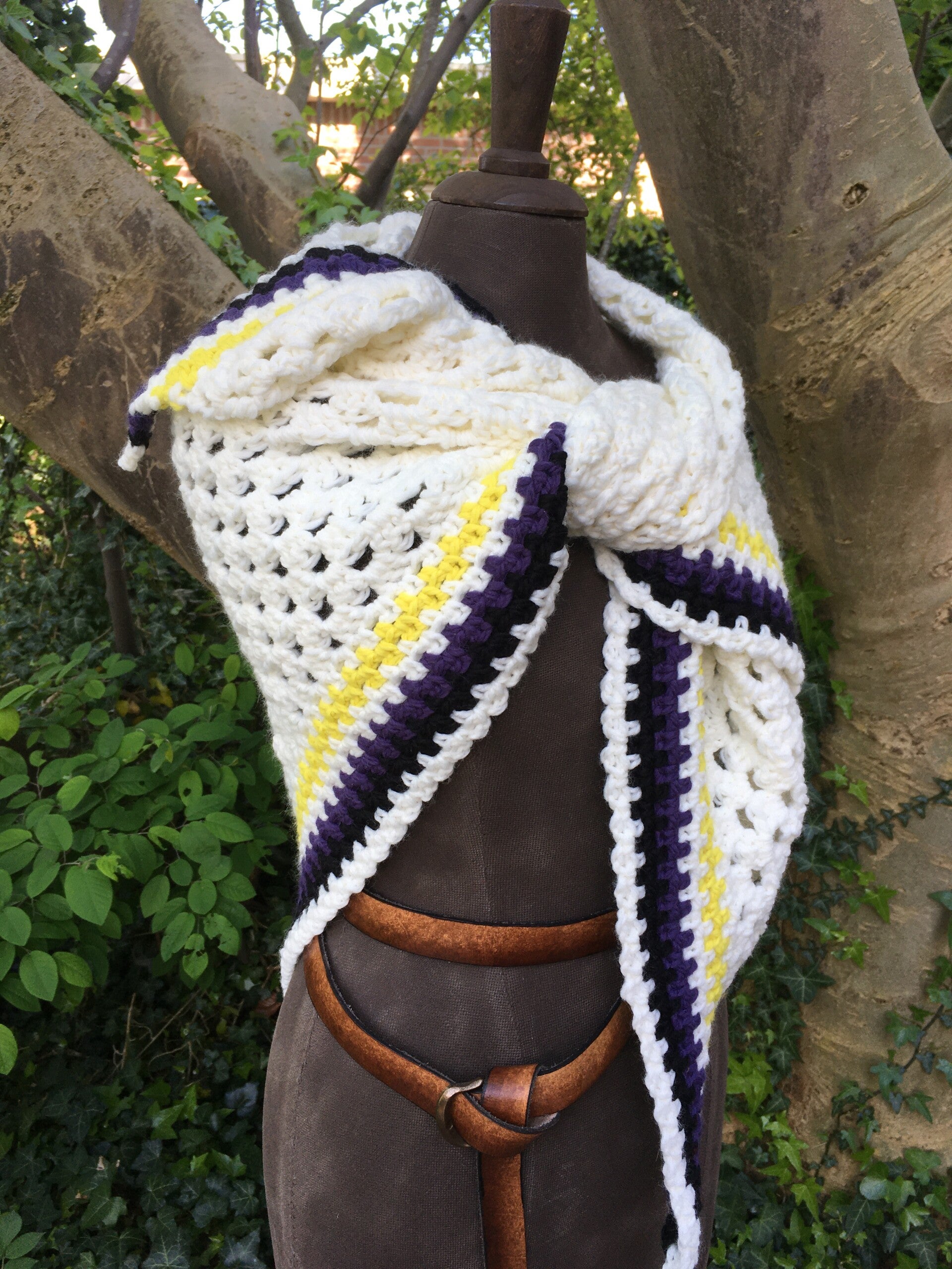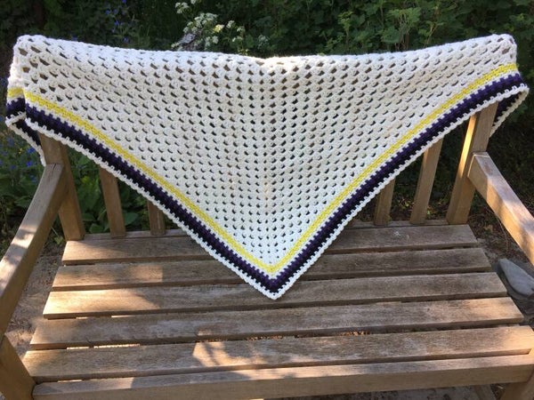 Triangular, medium sized wrap/shawl, extremely soft. The Hugs are our nice, warm shawl of "normal" size. We call them Hugs because they feel like a hug - soft and friendly to wear. They fit around the shoulders, but also work well as a scarf around your neck, with the point in front. It's really easy to shape and has extra long ‘wings’ so the knot will stay in place.