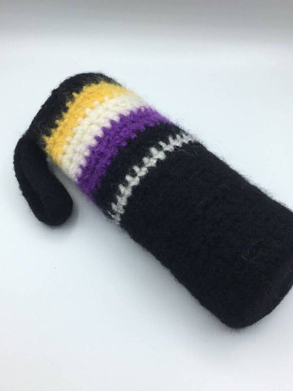 - Made of 100% wool, crocheted and then felted.