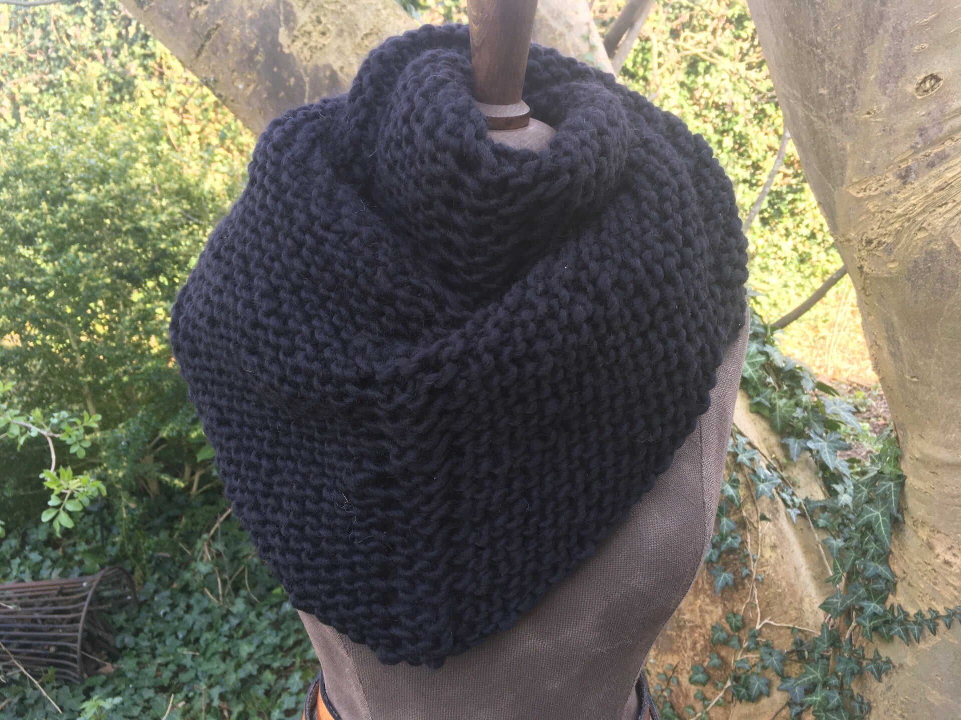 A triangle shawl, medium sized and extremely soft. You can use it as a wrap around you back and down our middle like Claire does in the series - but you can also use it 'backwards' around your neck with the middle point in front. It shapes very easily and has extra long 'wings', making the shawl stay in place.
