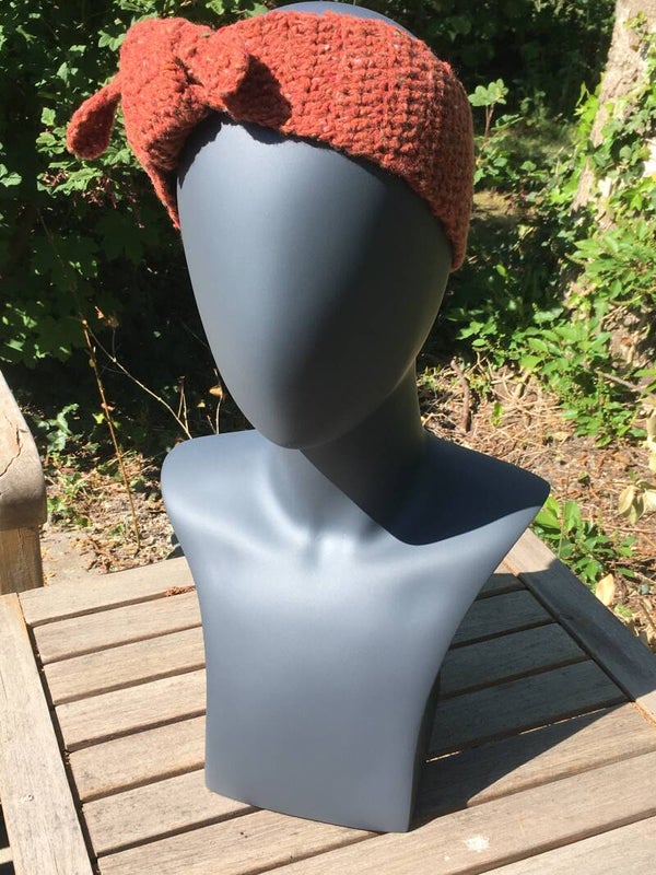 Super cute head band, made of 'cool wool', a nice combination yarn made of wool, viscose and acrylic. The result being a light and breathing head-band, very nice to wear. The band was made long enough to make a decent knot possible, the tips can even be hidden quite easily. Or not, of course, also a great look. Wrapped around your wrist the band will provide a bit of colour to your outfit.
