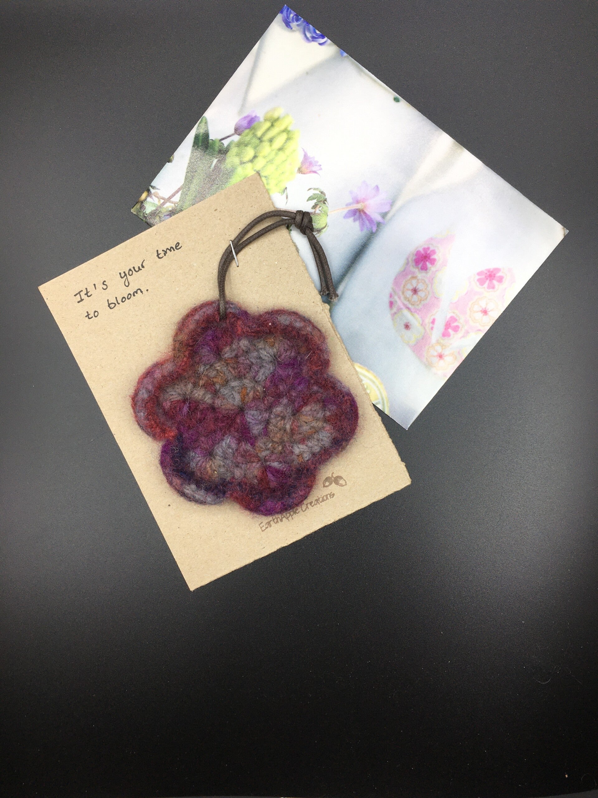 - Materials: Tag - handmade from 100% wool, felted. Card - made of recycled cardboard. Envelope - made of up-cycled magazines.