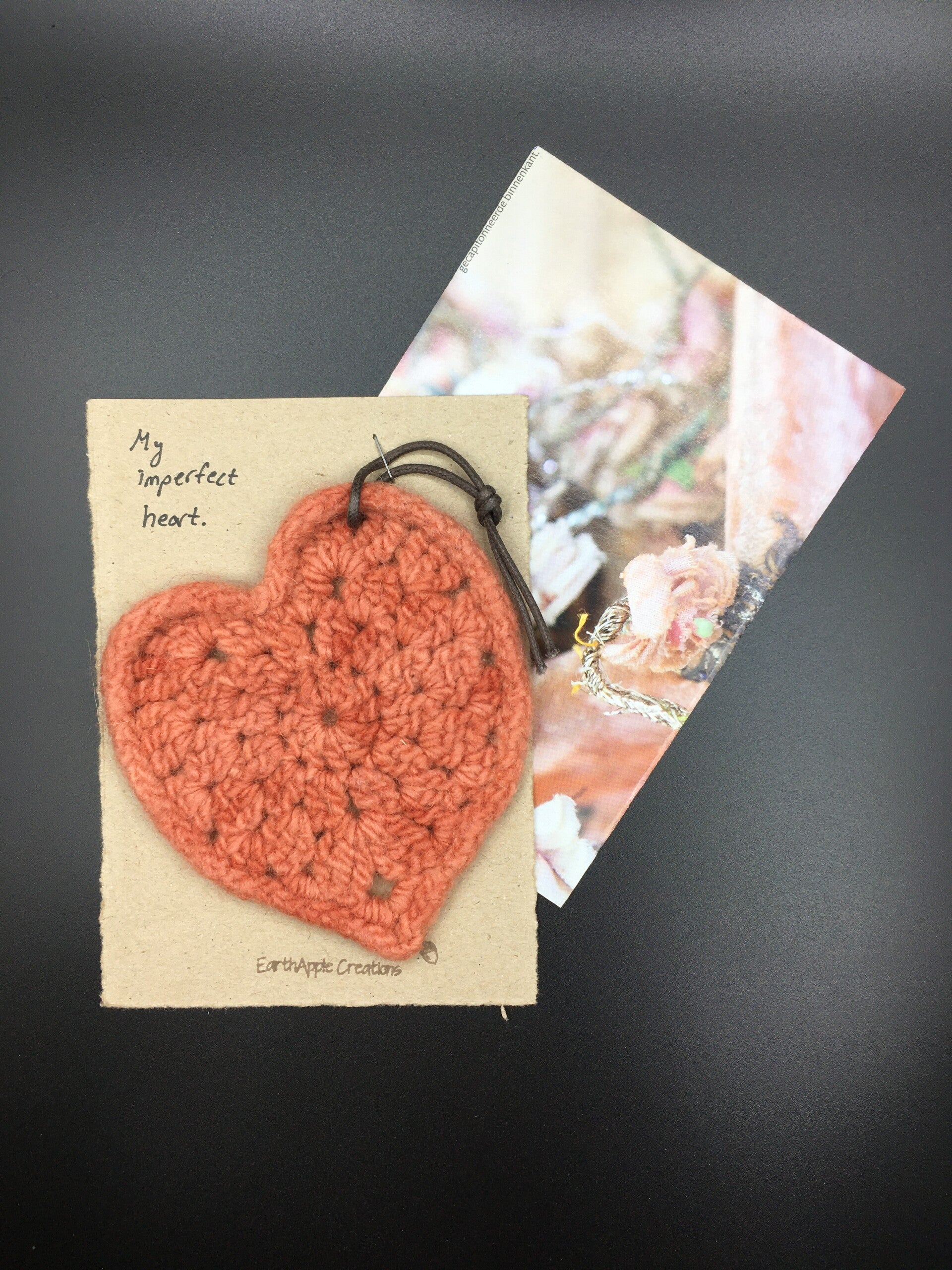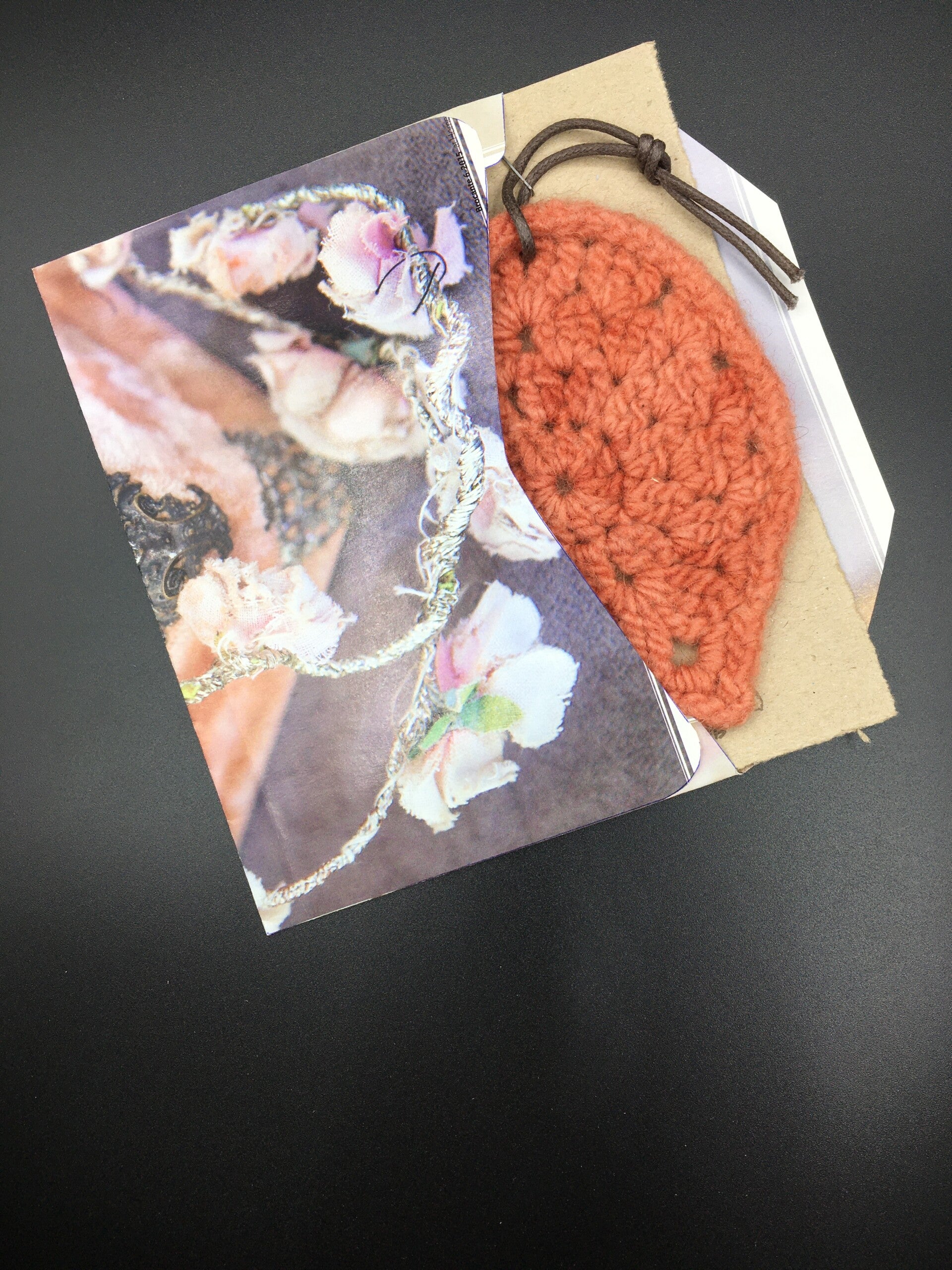 - Materials: Tag - handmade from 100% wool, felted. Card - made of recycled cardboard. Envelope - made of up-cycled magazines.