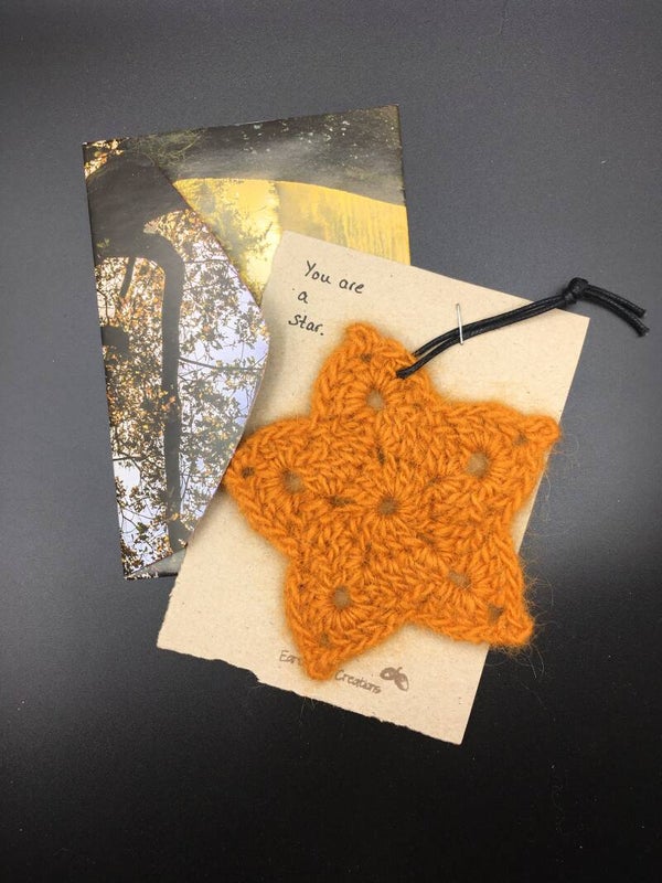 Send a little kindness - a recycled carton card with a crocheted & felted tag, and a simple, kind message.