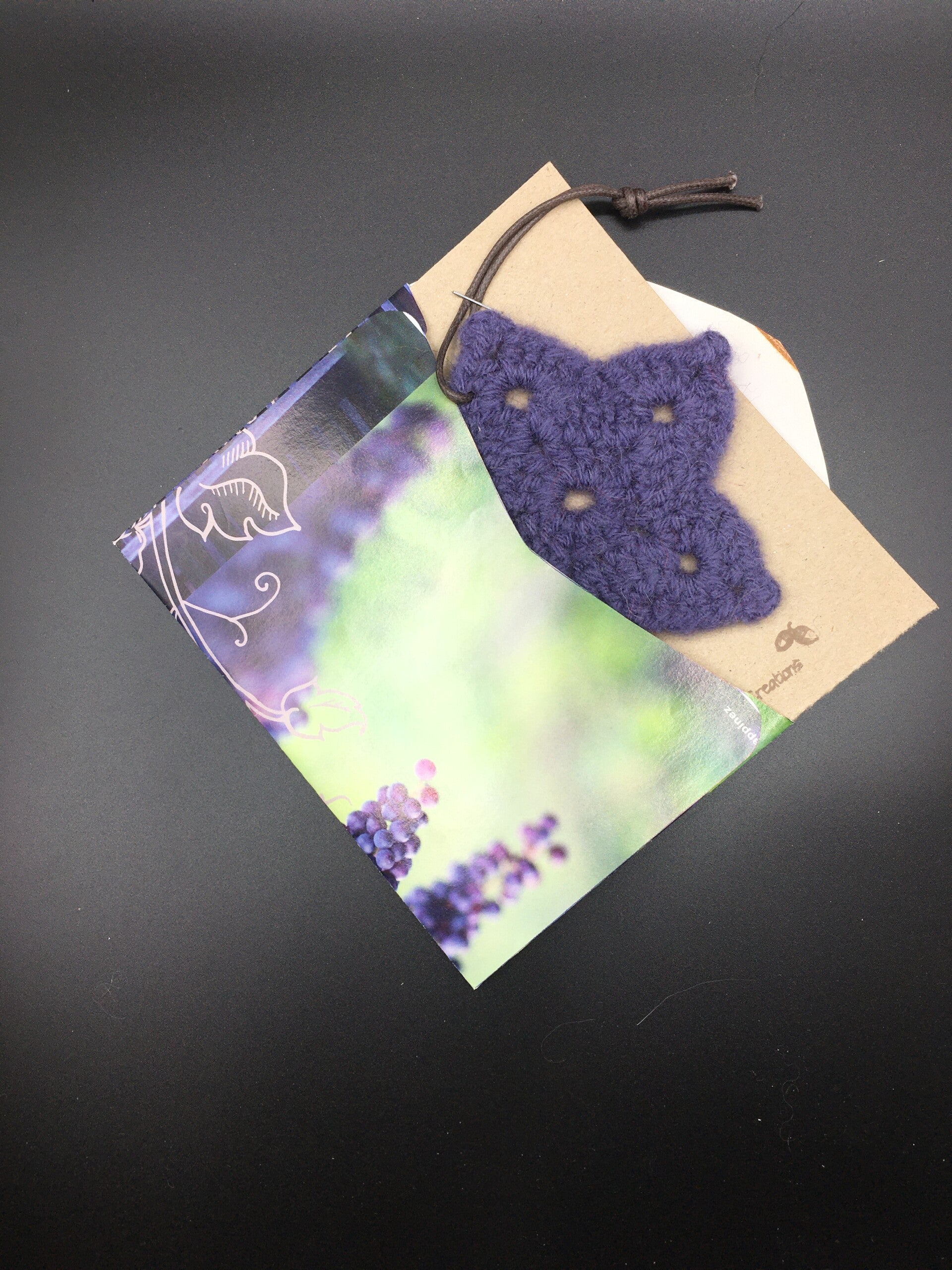 You receive a fitting and colour-coordinated envelope with the card, made of up-cycled magazines.