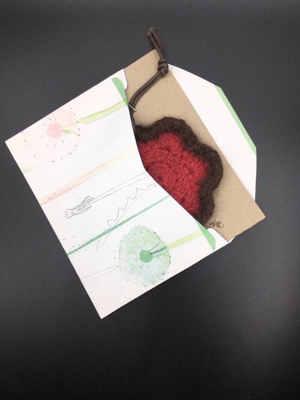 - Materials: Tag - handmade from 100% wool, felted. Card - made of recycled cardboard. Envelope - made of up-cycled magazines.