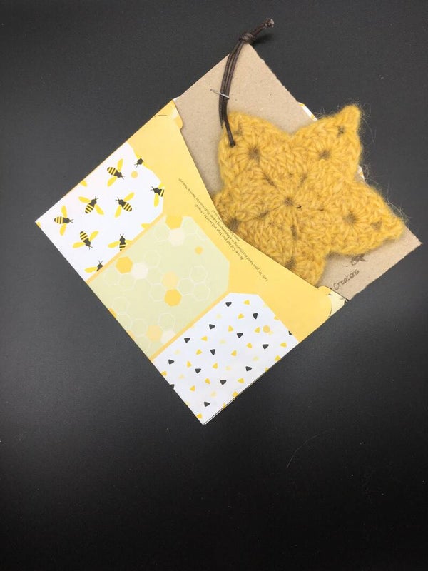 - Materials: Tag - handmade from 100% wool, felted. Card - made of recycled cardboard. Envelope - made of up-cycled magazines.