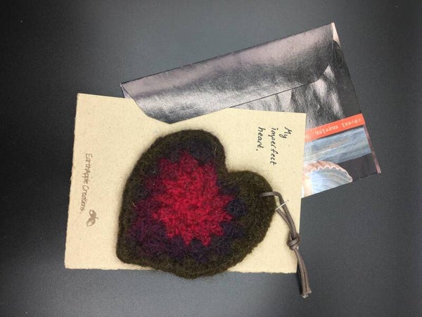 - Materials: Tag - handmade from 100% wool, felted. Card - made of recycled cardboard. Envelope - made of up-cycled magazines.