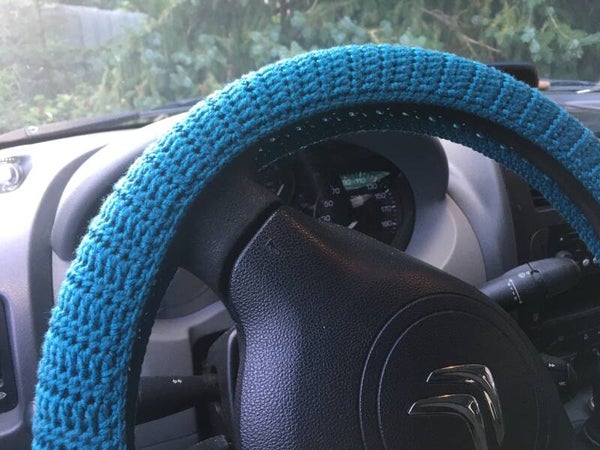 Awesome with a bit of colour in your car, and at the same time a nice, clean idea: a washable steering wheel cover. We make these to order, especially for you. Nice to hold because merino wool doesn't feel warm, and apart from that we make the covers with a pattern that gives a good grip, not too smoothe.