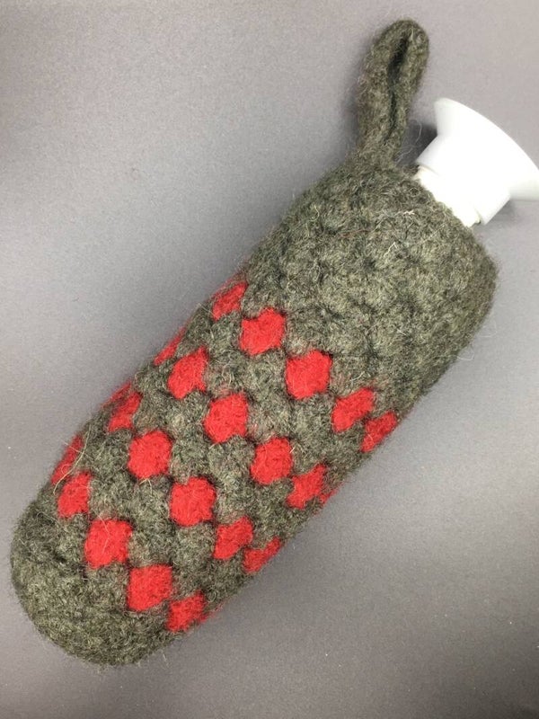 • Made of 100% wool, crocheted and then felted.
