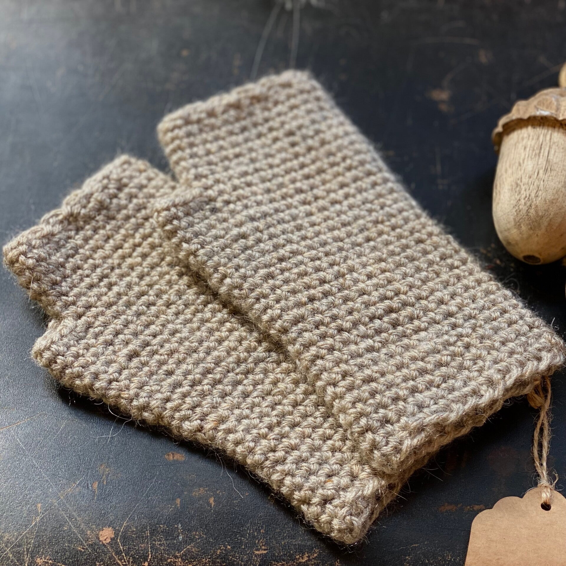 These fingerless mittens / wrist warmers with a little ‘thumb,’ are some of our most sold products: they provide convenient ways to keep your hands warm, because you do not need to take them off if you want to use your smartphone :)
