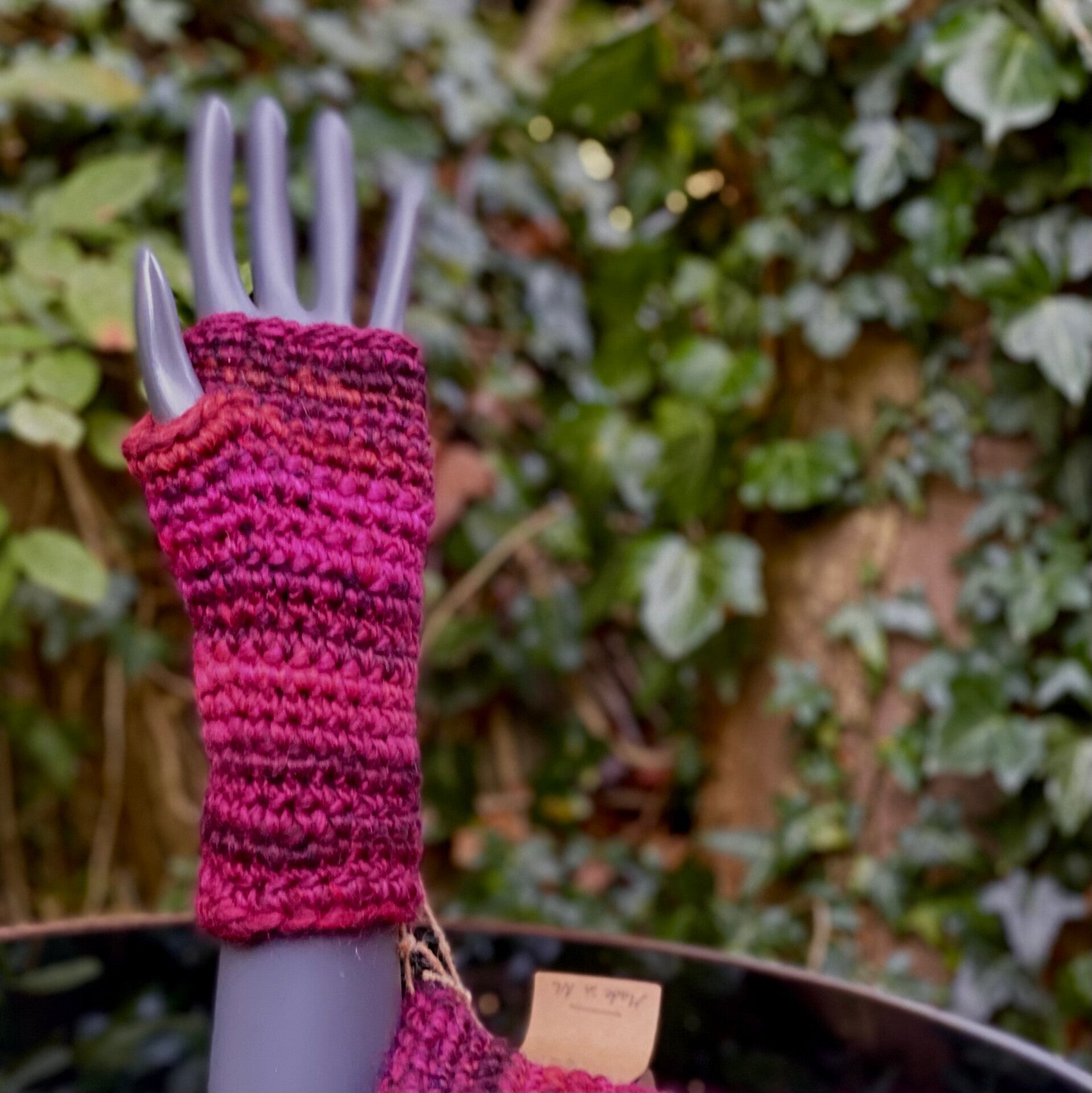 These fingerless mittens / wrist warmers with a little ‘thumb,’ are some of our most sold products: they provide convenient ways to keep your hands warm, because you do not need to take them off if you want to use your smartphone :)