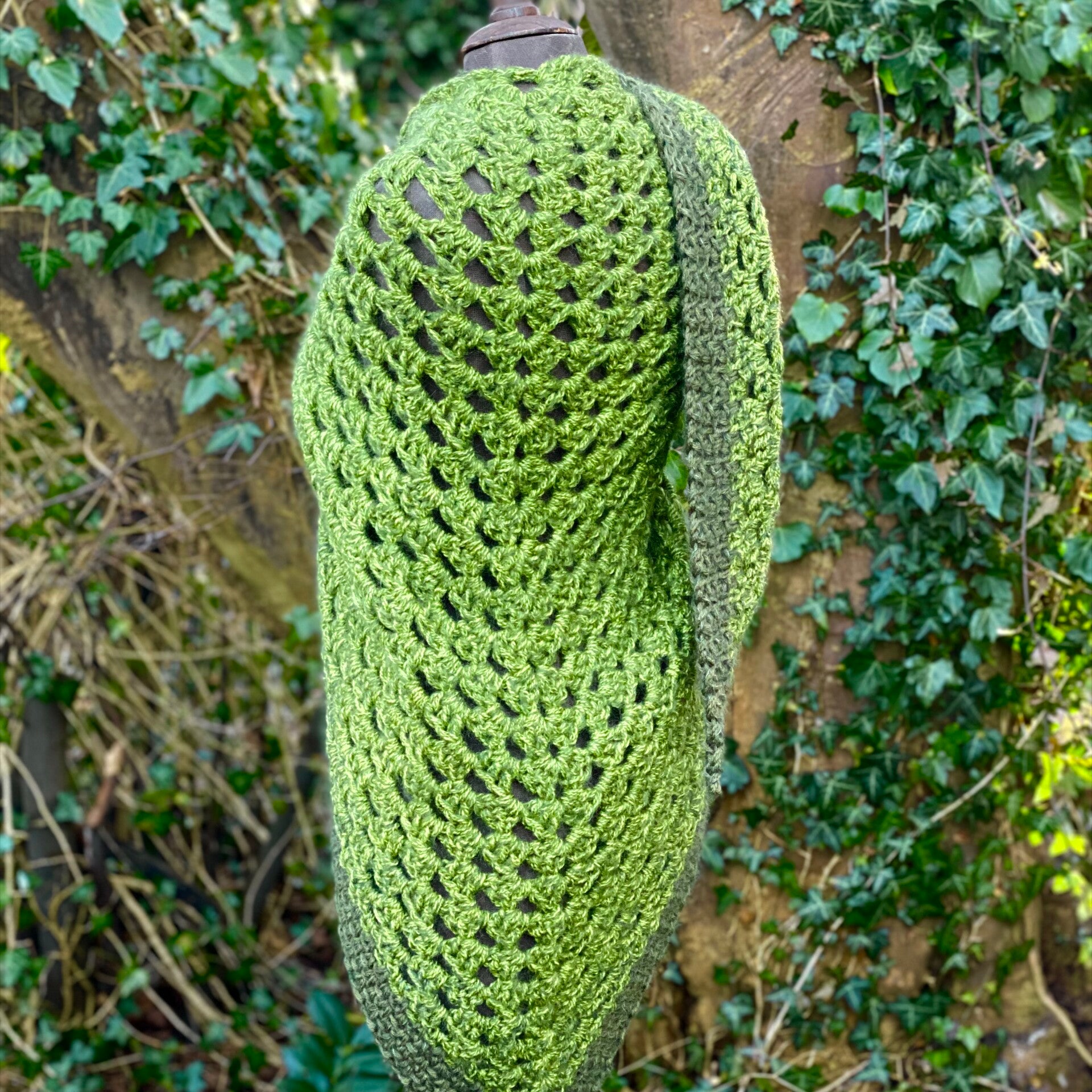 It can be used as a wrap, or as a huge shawl with the point in front. It's really easy to shape, and has extra long "wings" to secure that it stays in place too.