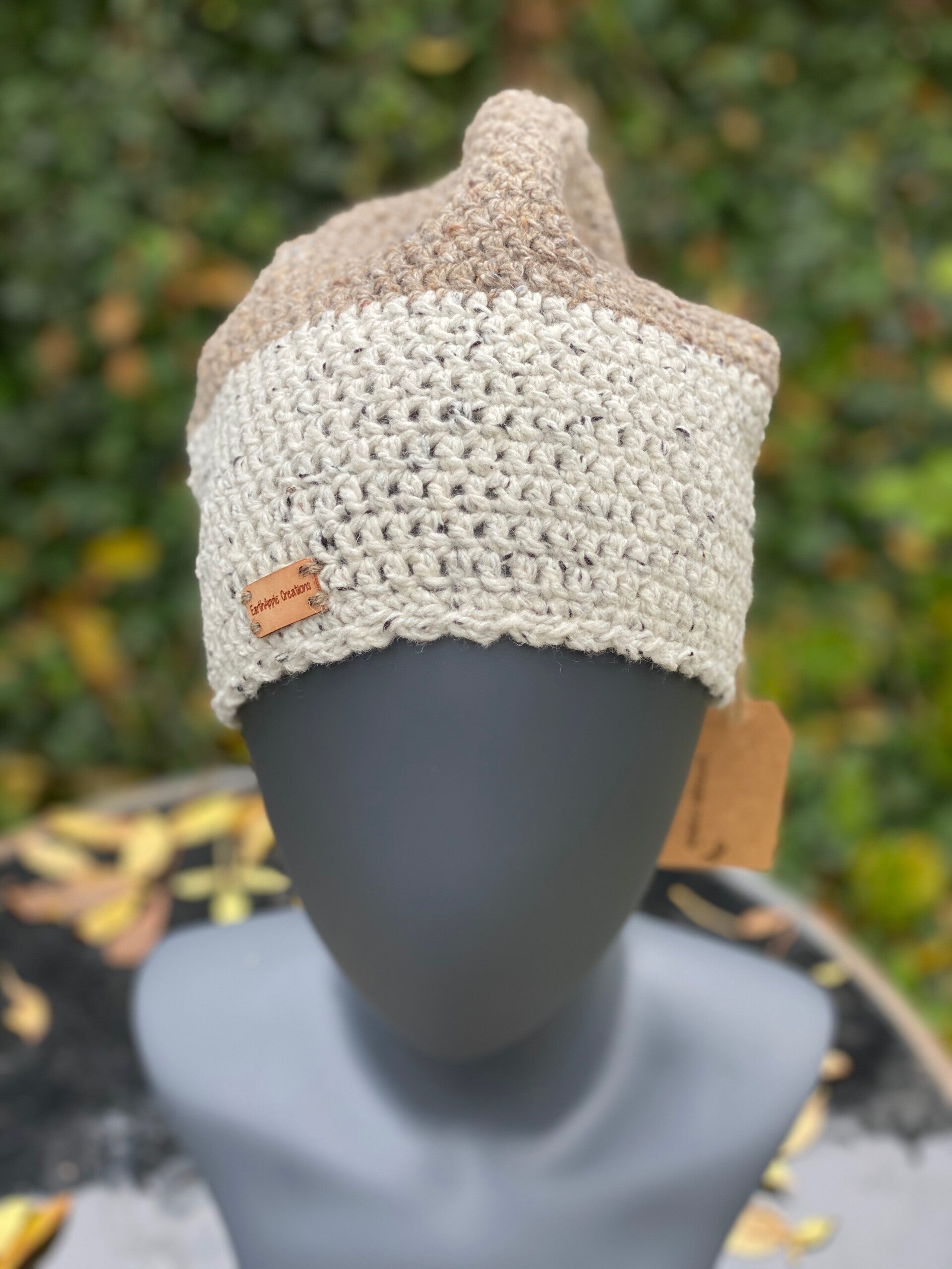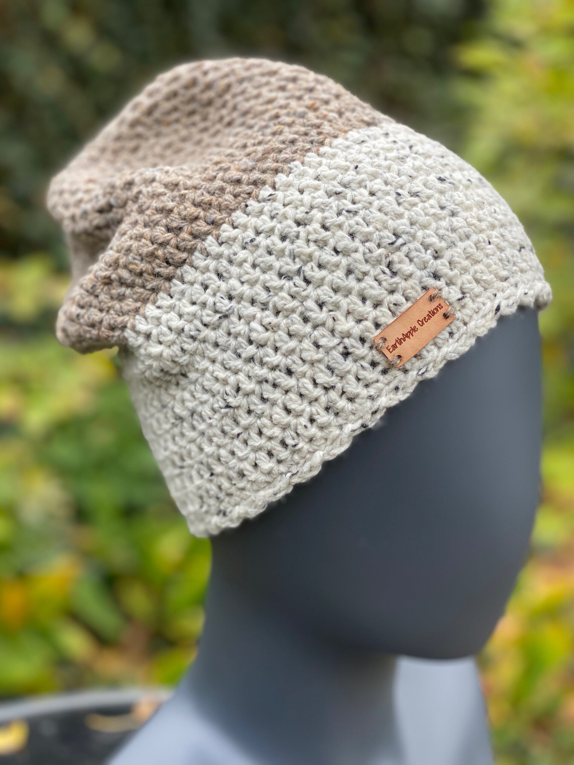 An awesome beanie made in a very comfortable yarn, 'cool wool': The viscose in the yarn makes the beanie comfortable and not too warm, and very stylish.