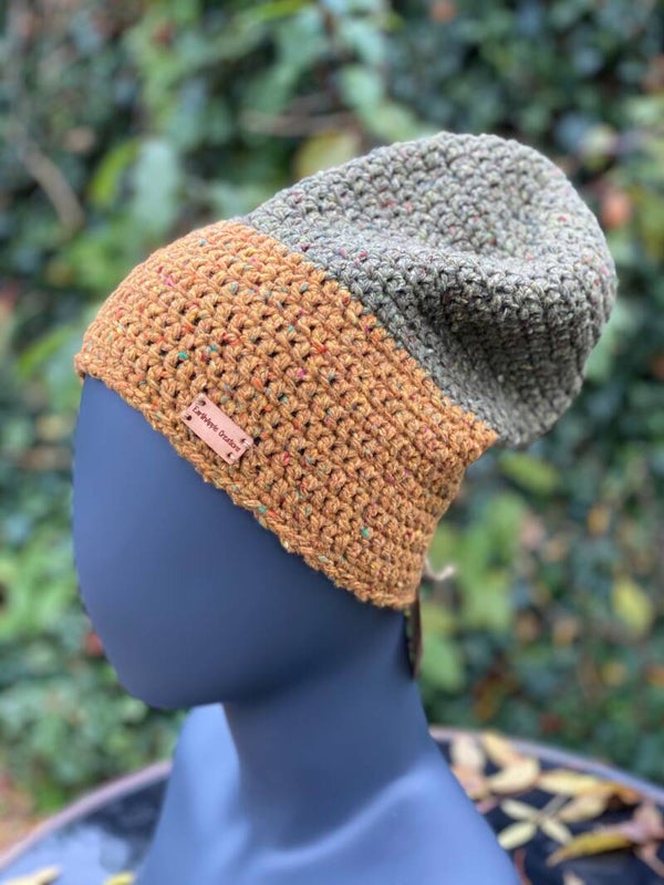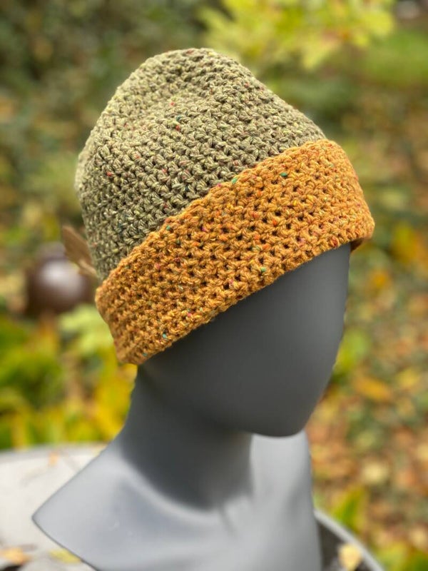 Two-tone beanie - ochre & olive