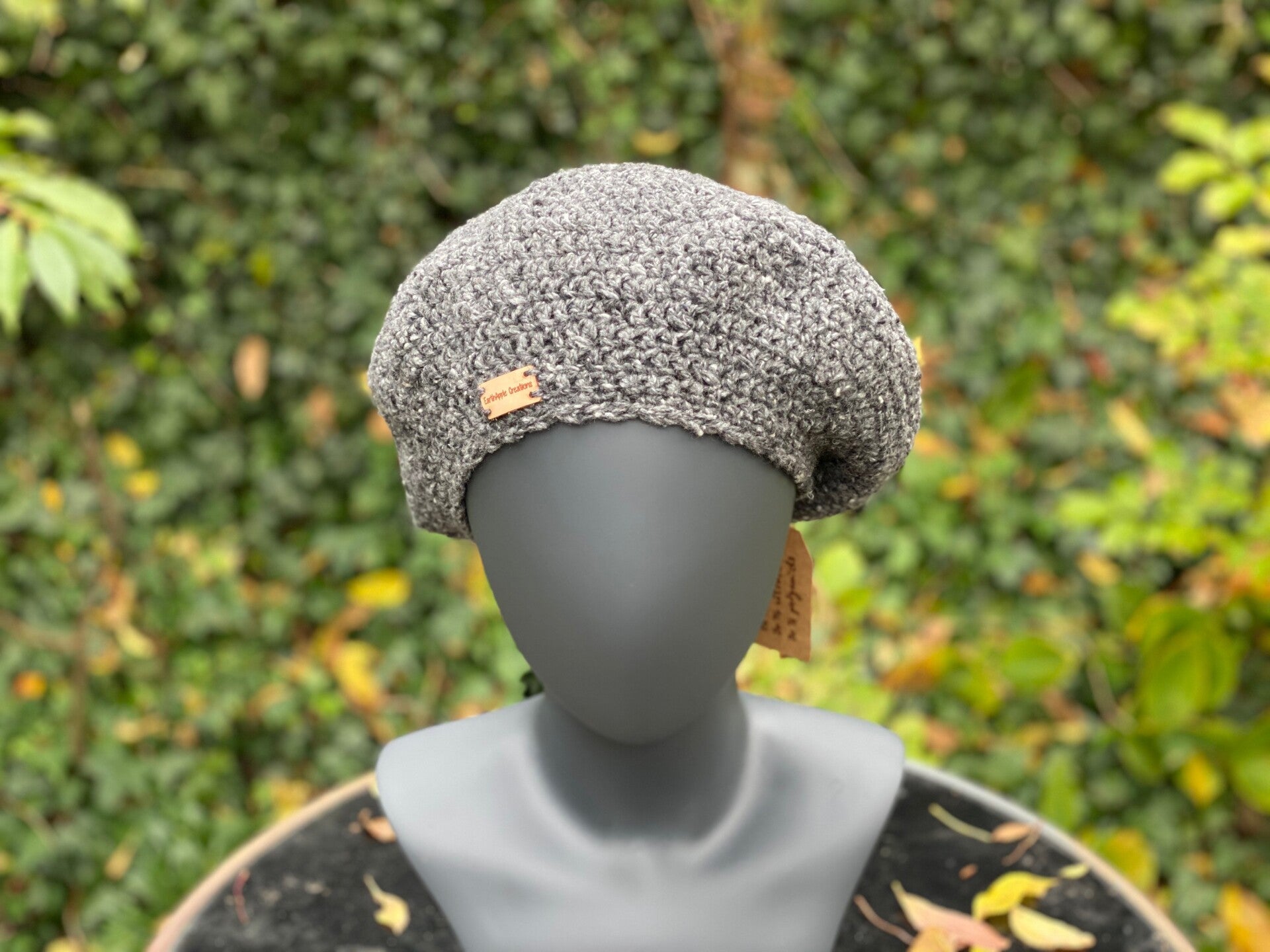 An awesome, large and rounded beanie, with room for the hair. It was crocheted from a wool & viscose mix, making it soft, shapable, stylish and not too warm.