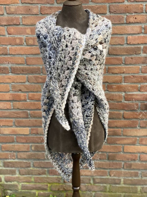 Our number one item, moest sold product ever: A super large wrap with extra long 'wings' to make it easier for you to wrap it the way you like and let it stay in place. The wrap is made of a combination of two threads, making it extra soft and cuddly. Despite its size, it has a light feel to it.