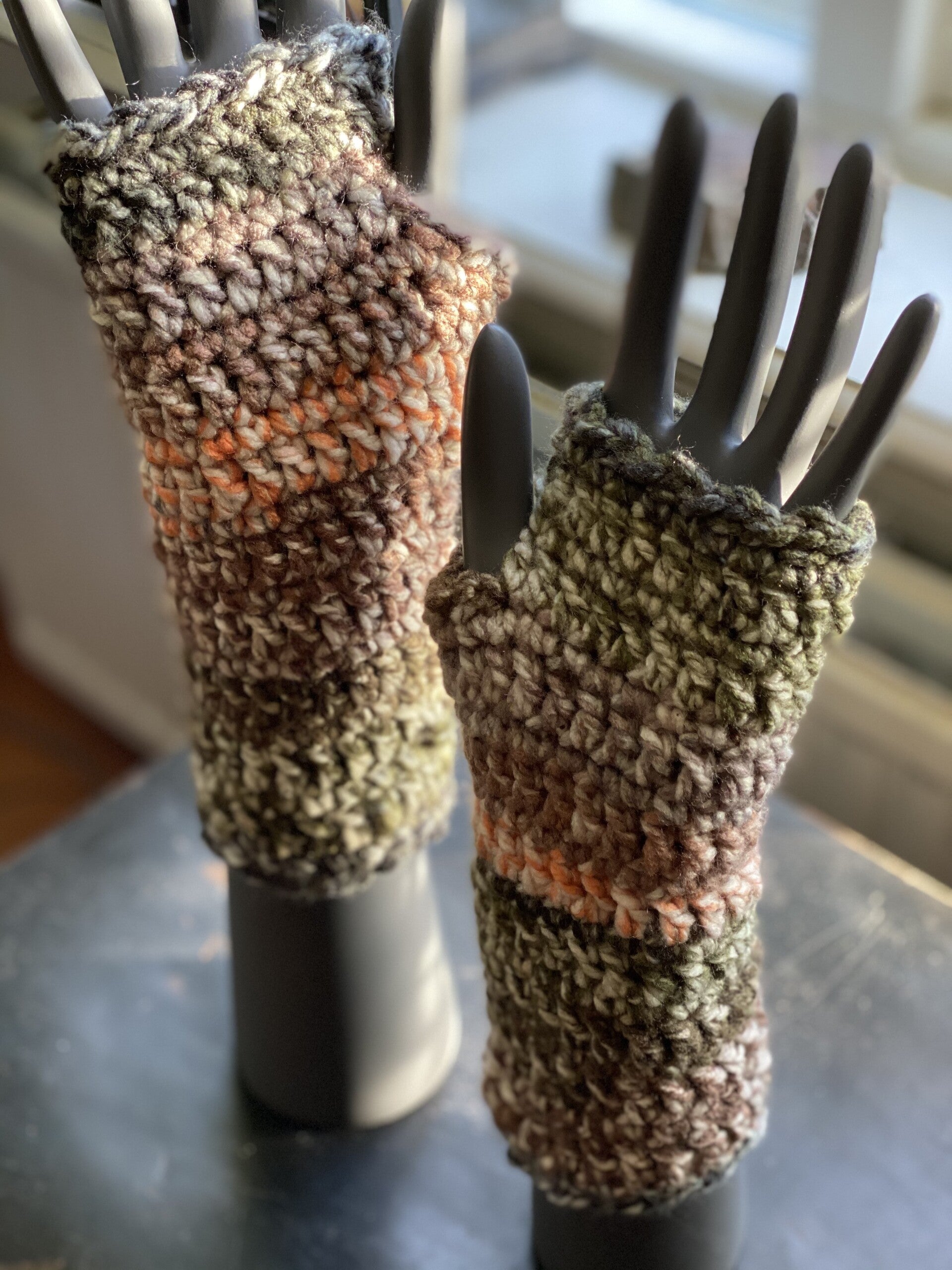 Vingerloze handschoenen / Polswarmers - groen / bruin / natuur
